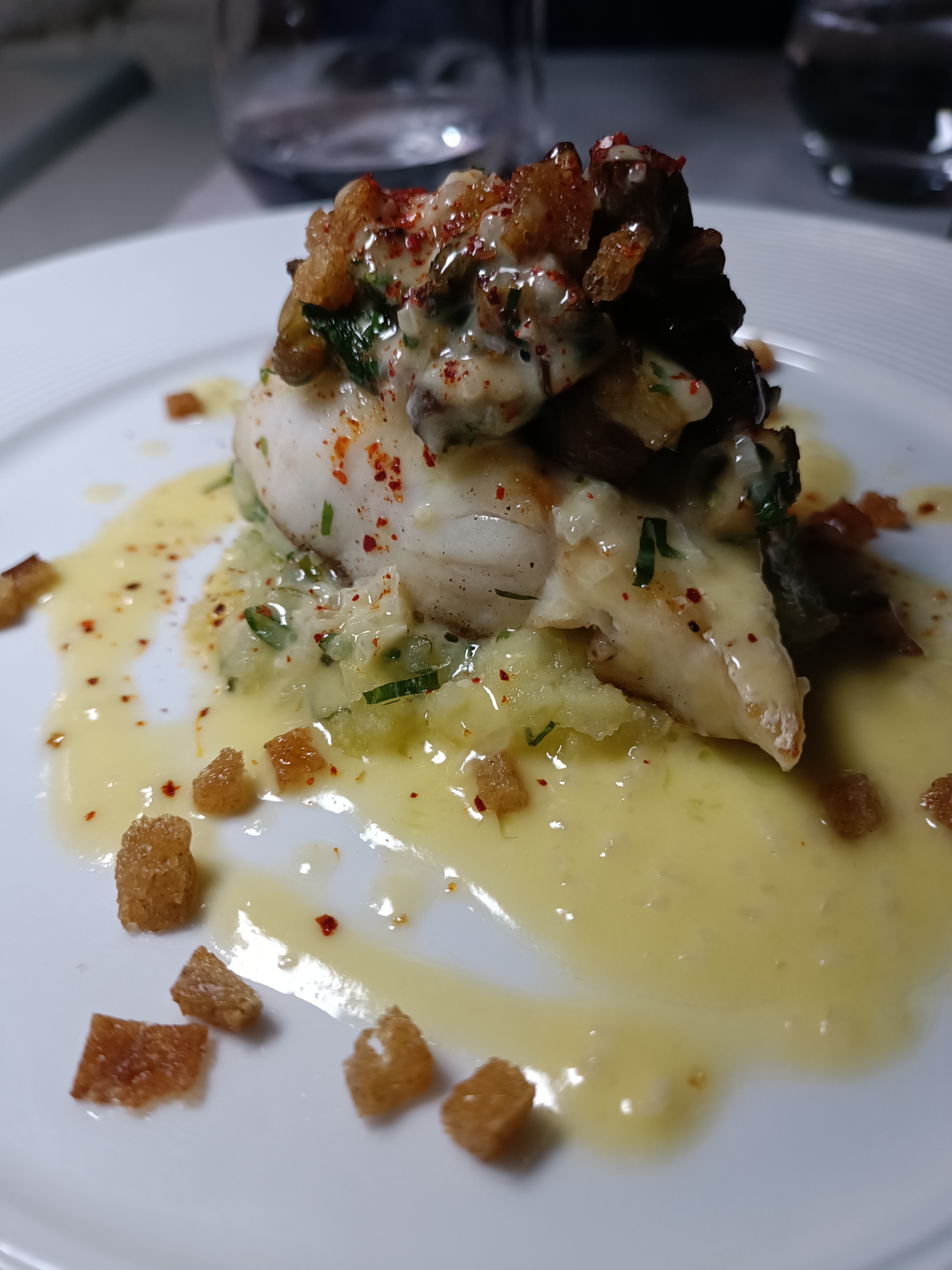 Très belle expérience culinaire. Plats raffinés, joliment travaillés, goutus et élégants à l'œil comme en bouche. Une très jolie découverte. De l'ambiance résolument familiale, peut-être aurions nous attendu un peu plus de légèreté et de sourires dans le service, inégal d'une personne à l'autre. Nous recommandons !