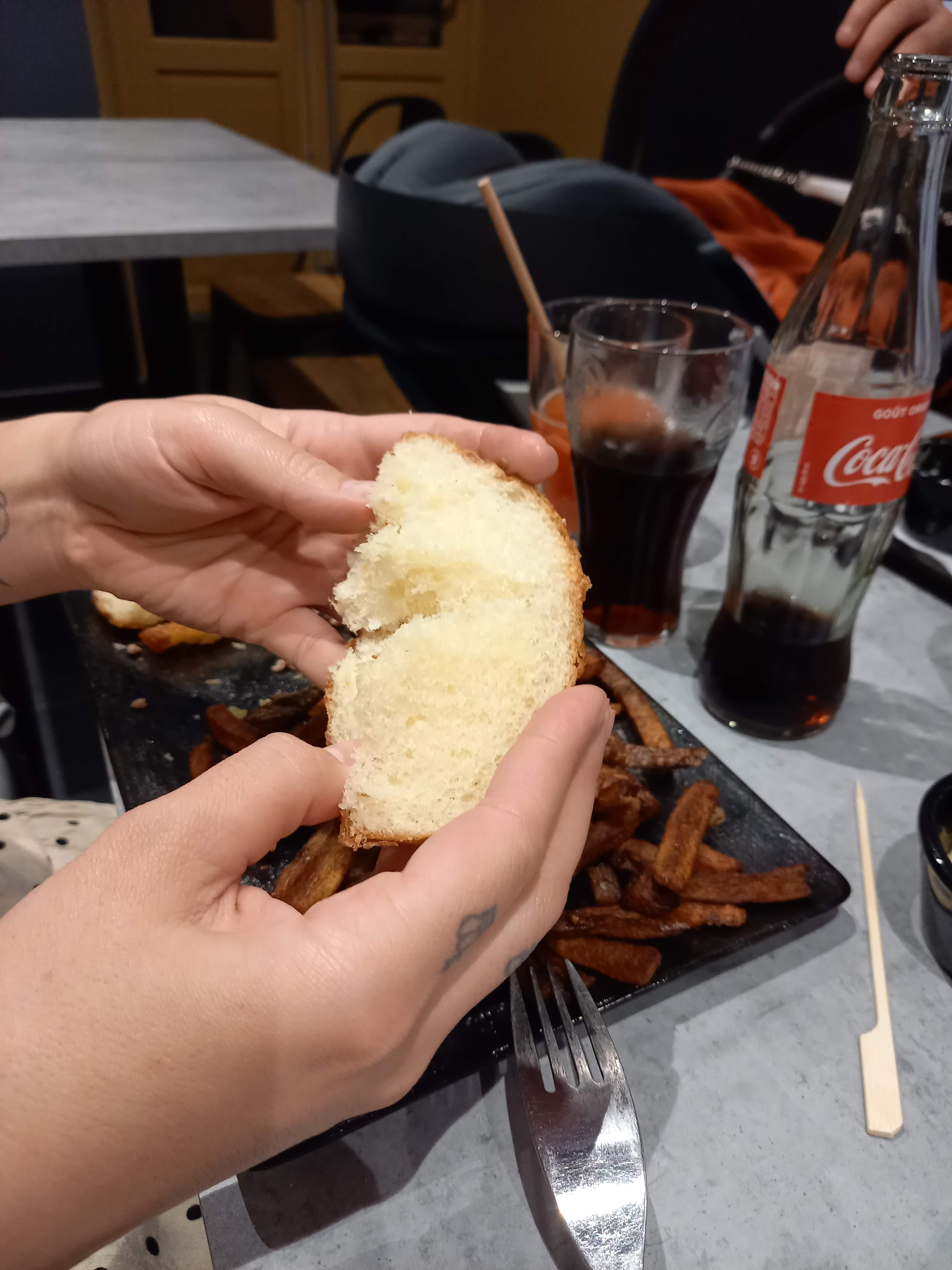 2xfrites froide et l’hamburger tiède la 2 eme fois a déconseillé même service pain caoutchouc gout pas bon