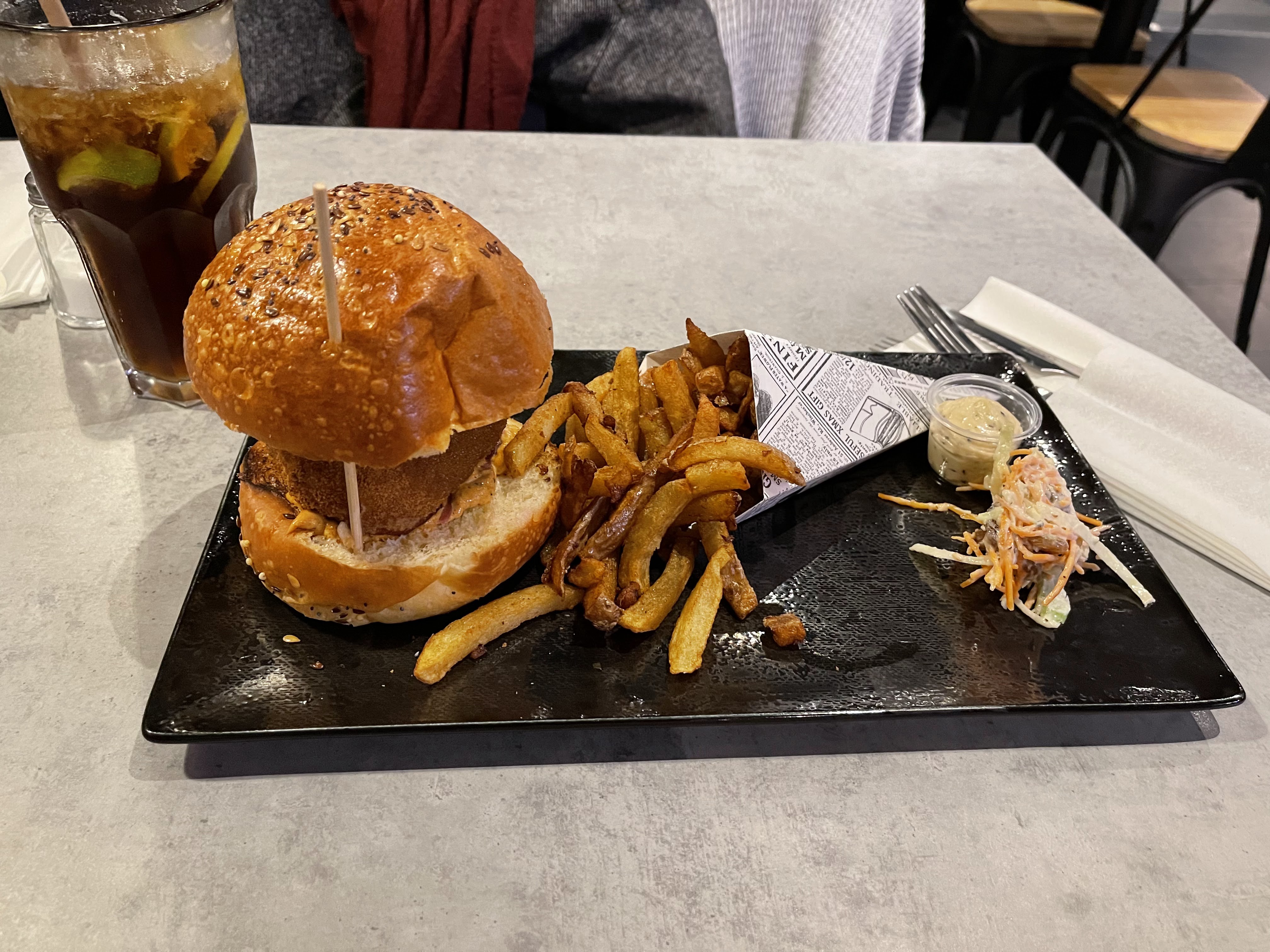 Burger au saumon Froid, en fait c'était un sandwich. Que de l'assemblage. Frites froides aussi Je ne recommande pas pour quasi 20 €.