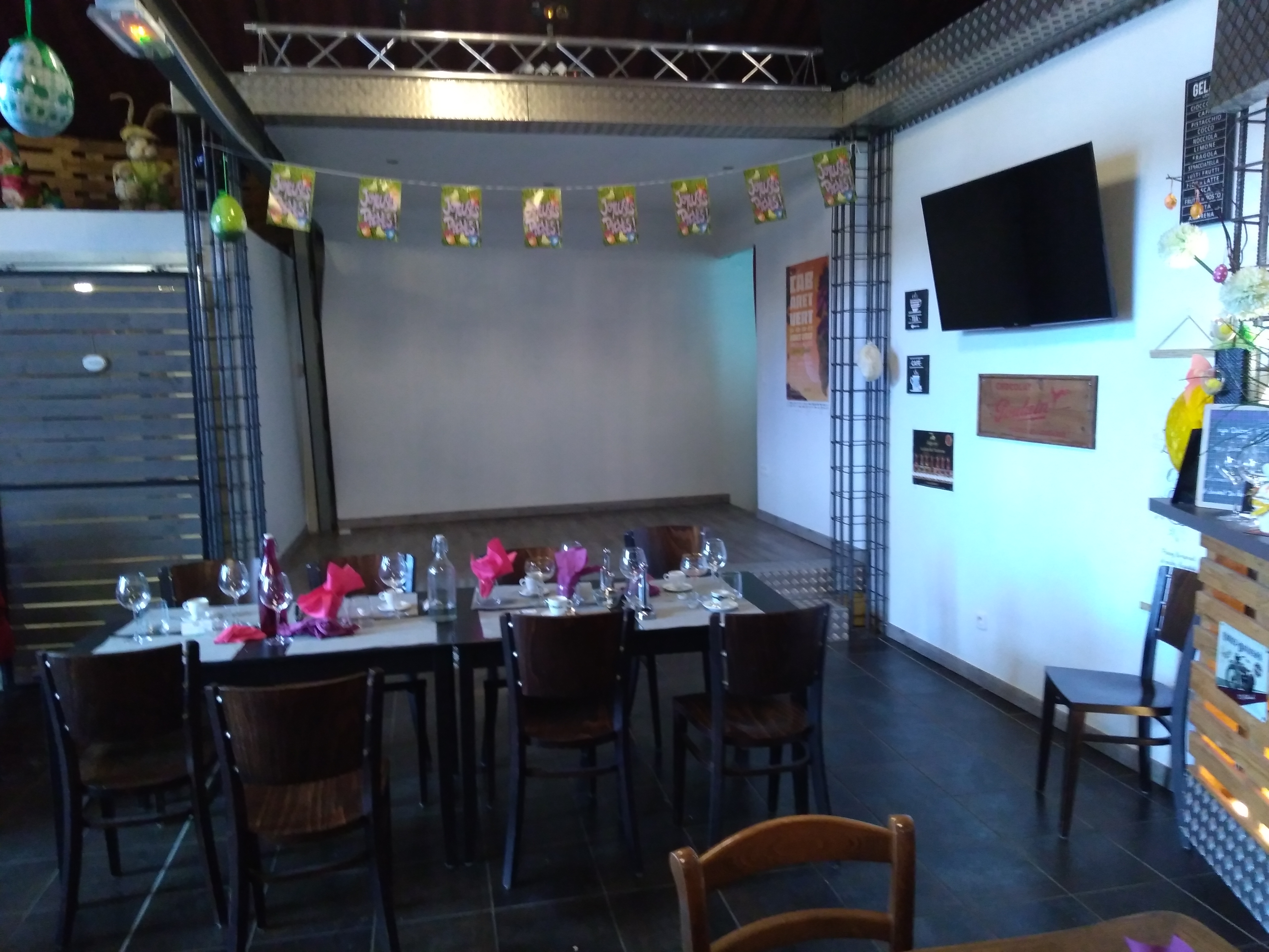 Cela fait bon nombre de soirées que je passe dans cet endroit, entre amis ou en famille et n'ai jamais été déçue. Certes, il y a des moments où l'affluence est telle que le service est plus compliqué mais le personnel l'explique et on peut aisément le concevoir. Les soirées à thèmes sont toujours tops que ce soient les karaokés, les soirées dansantes ou les blind test,. J'ai toujours beaucoup aimé l'ambiance amicale, festive et simple qui y règne. Sarah et sa maman sont très sympathiques, souriantes et essaient d'arranger au mieux les clients et les autres membres du personnel ne déméritent pas. Je le recommande si vous voulez passer une bonne soirée et bien manger pour un prix très correct. C'est le seul endroit du coin à proposer ce concept! Pour passer encore de meilleurs moments, il ne me manquerait qu'un blanc moelleux type Monbazillac, Sauternes ou Uby mais ça viendra peut-être ;)
