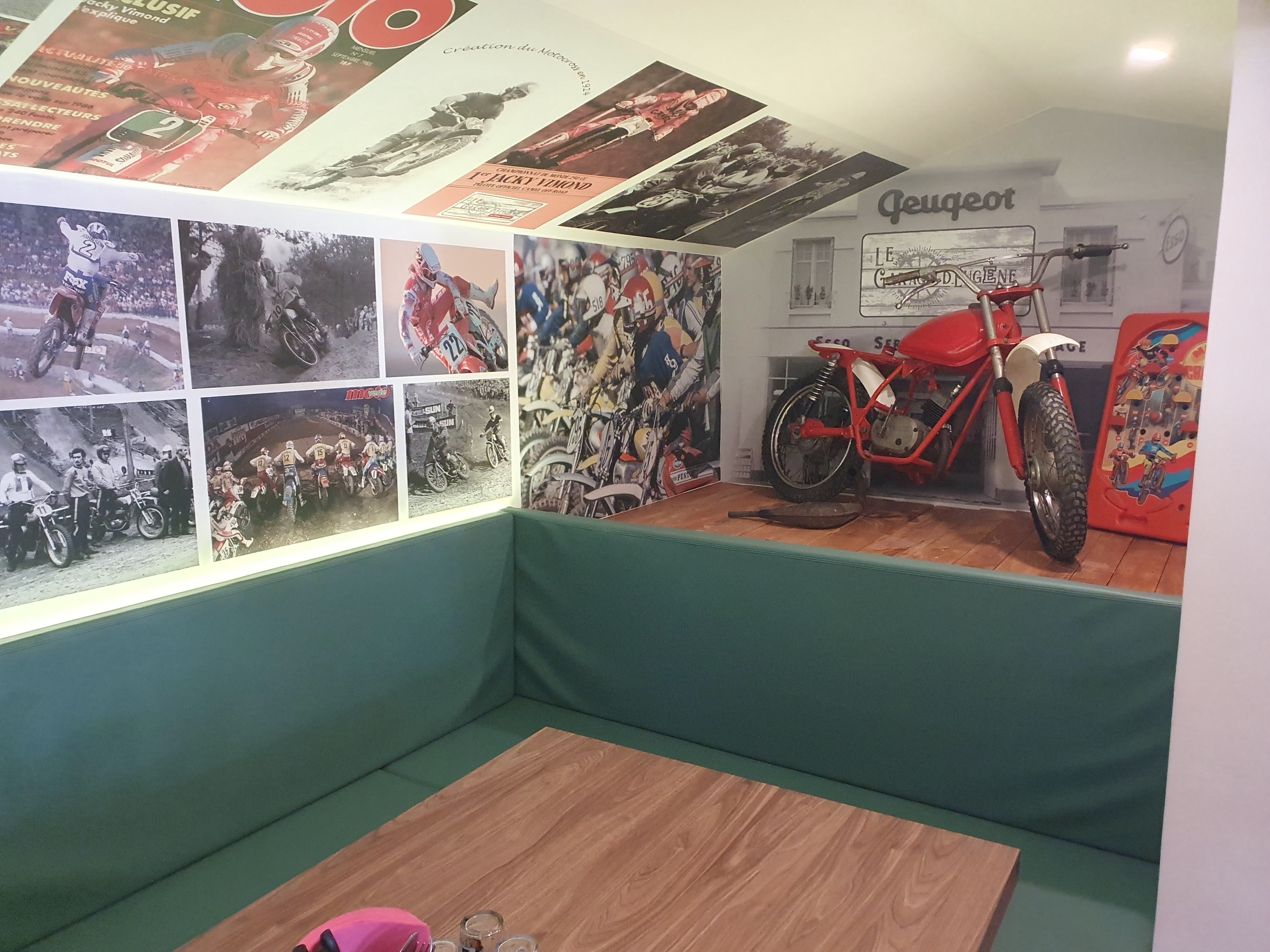 Venu un jeudi midi à 23 personnes. Superbe endroit, décoration soignée et qui nous fait remonter le temps ! Entre les photos, les automates d'époque, les vieilles voitures/motos rien à redire ! Le personnel est accueillant et très serviable. Idem pour le patron que l'on peut voir à l'œuvre en cuisine. Et niveau gustatif... là aussi c'est carton plein, cuisine simple, bonne, fraîche, assiettes copieuse, très bon rapport qualité prix. Nous avons tester fish ans chips avec frites maisons, burger là aussi avec frites maison et la suggestion du jour et tout le monde était ravi. Pour une adresse qui vient tout juste d'ouvrir c'est vraiment très agréable. Je recommande vivement le garage d'Eugène