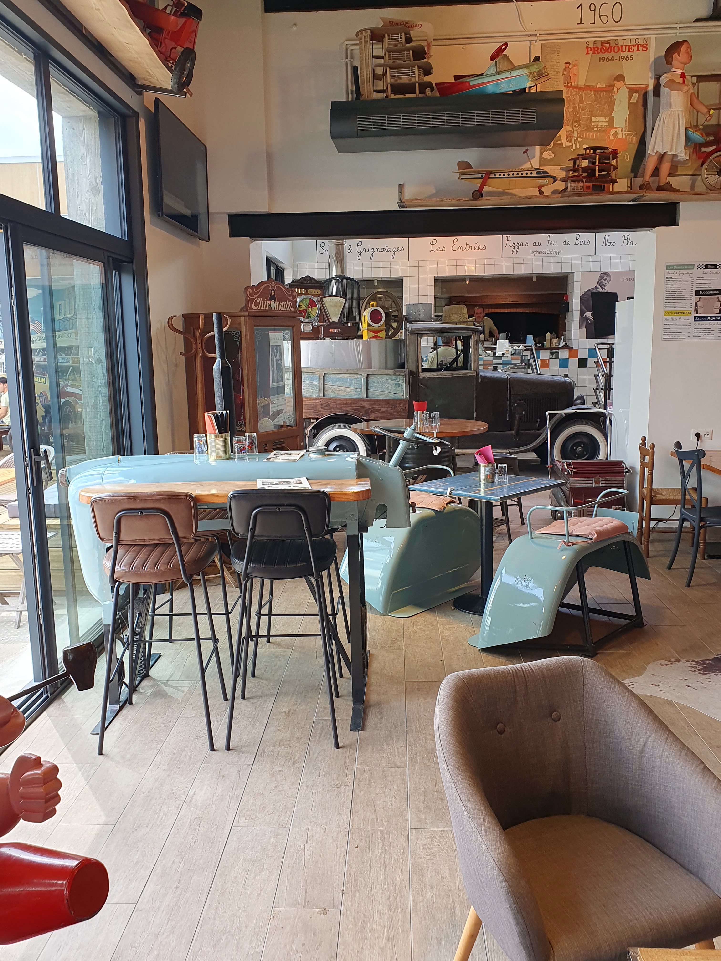 Restaurant au cadre et concept très sympa. Le coté vintage est vraiment sympa dans tout les détails apportés (flipper voitures trains) . Les plats sont bons et en bonnes quantités pareil pour le menu enfant. Le service est un peu lent mais ce n'est que le début ils vont s'améliorer. Ils sont sympa ce qui fait oublier l'attente