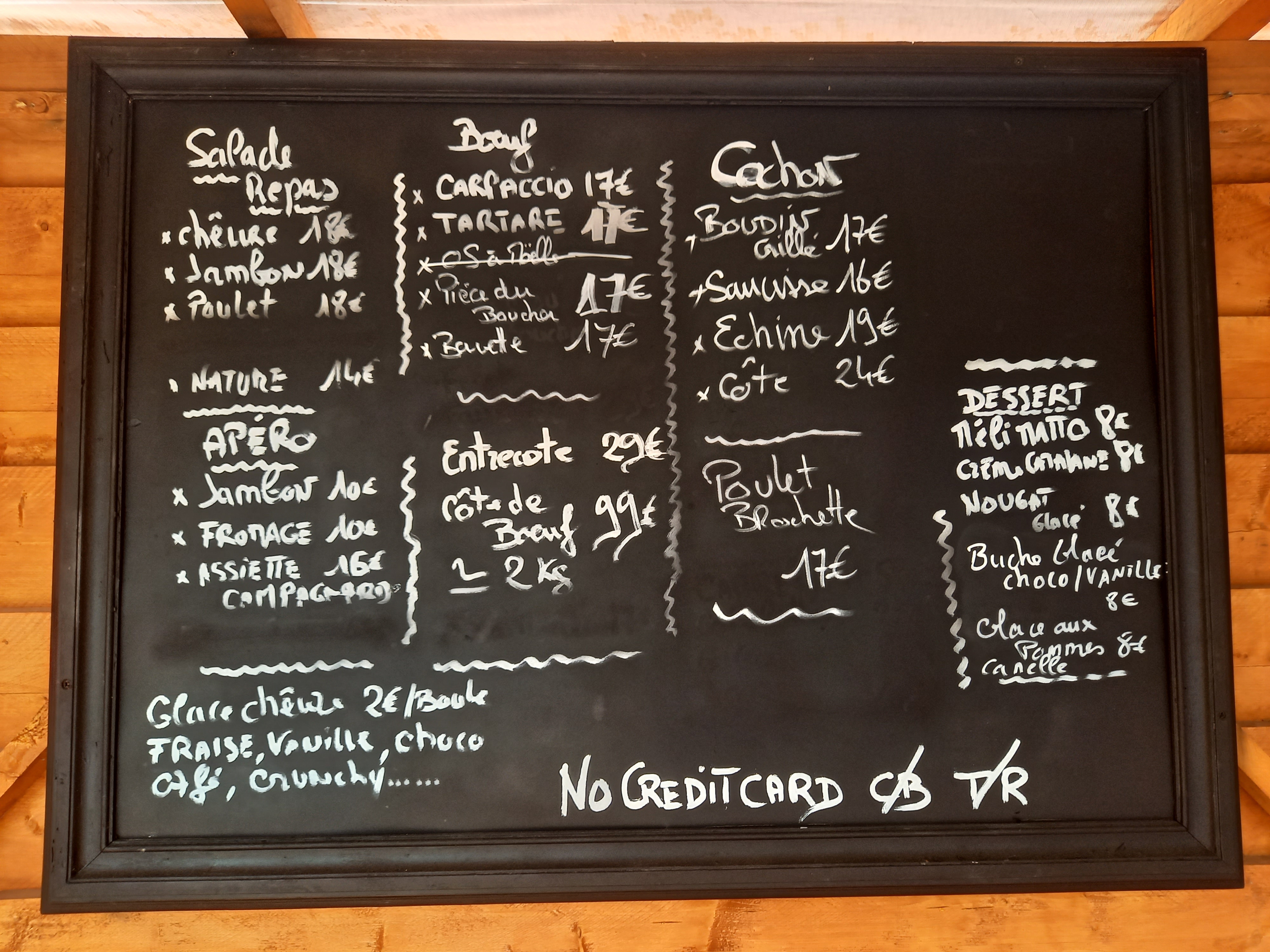 Authentique Local Militant No CB Viande de qualité Garniture locale pommes de.terres délicieuses Salades fraîche et locale Dessert avec produits locaux Fromages locaux.. Droit de bouchon Bref !!! Vrai proposition à la FRANCAISE et dans le cœur ❤️ ❤️ ❤️ Les BOUZATAS passez votre chemin... EPICURIENS...VIANDARDS....VENEZ !!!