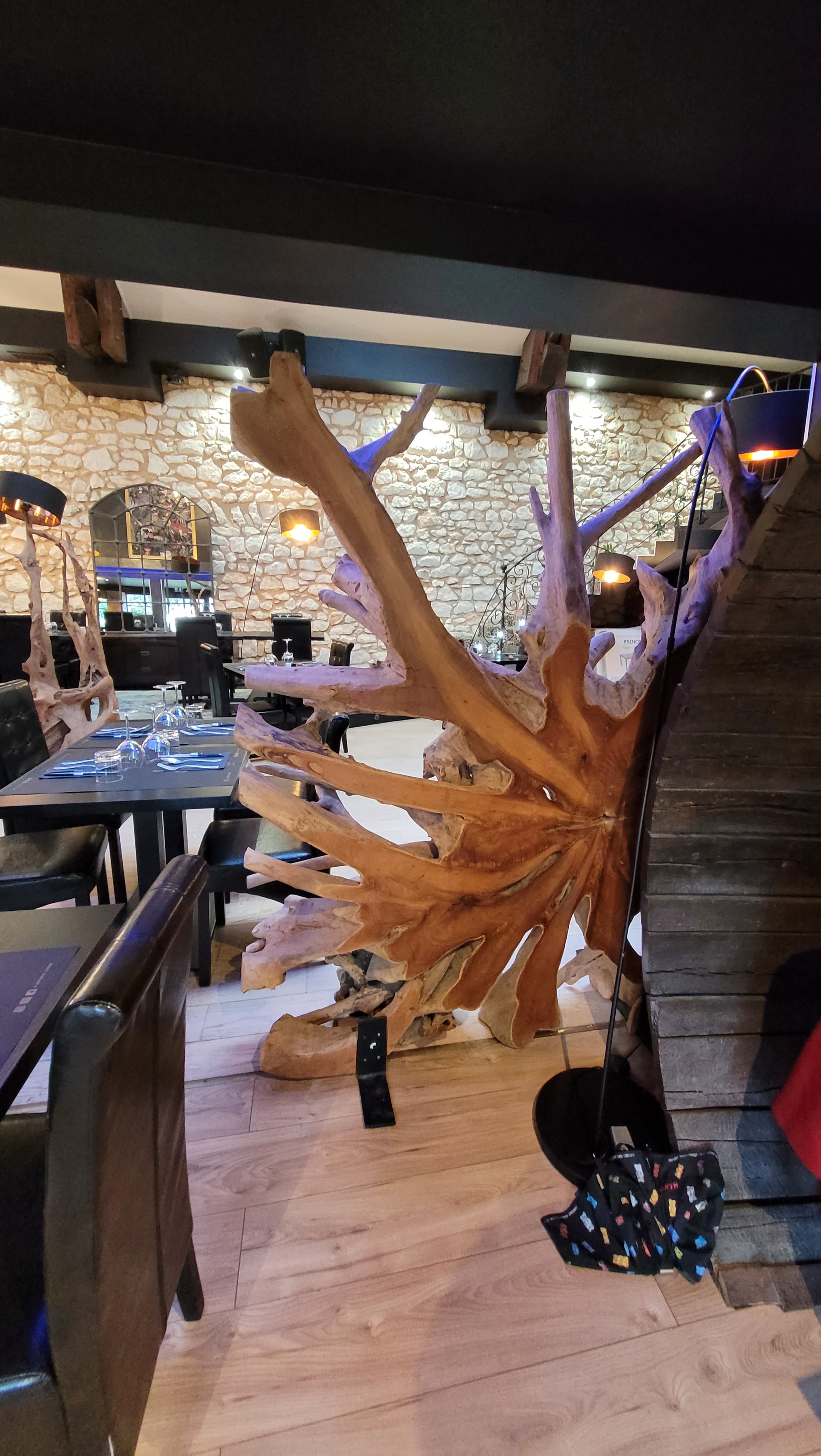 Tout ce que j’aime ! ! ! Belle bâtisse en pierre, du bois, du verre, des plantes, des objets anciens... et des sièges disparates où chacun peut trouver la taille qui lui convient. Dans les assiettes, c’est de la folie. Pour exemple, pour voir comment ils font de 5 huîtres une œuvre d’art, voir les photos. Des techniques particulières comme les perles dont je raffole, des produits parfois d’origine asiatique comme la petite soupe servie en mise en bouche, ... tout est fait pour notre régal. Le petit bémol, les difficultés de stationnement qui ont provoqué mon retard dont je vous prie de m’excuser.