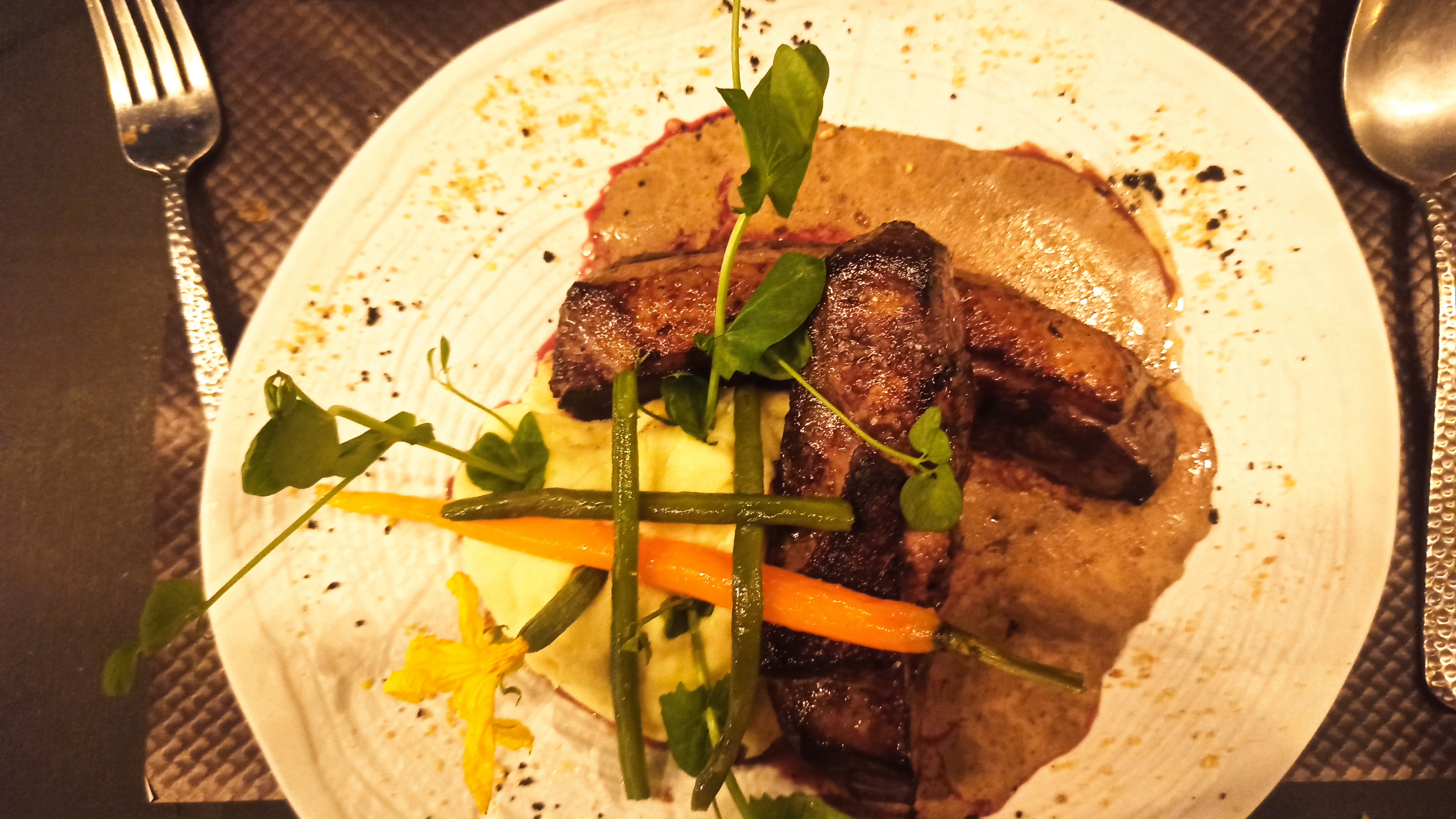 Des le passage de la porte d’entrée, on se retrouve dans ce bel univers. Un restaurant avec une décoration magnifique, un accueil des plus chaleureux. En entrée une crème brûlée au foie gras vraiment délicieuse, En plat un risotto au vieux parmesan et truffer rocamadour en dessert. Le tout servit très joliment, les portions sont parfaite, moi qui suis gros mangeur, et surtout pour un prix vraiment très sympa (22€ Entrée-plat-dessert) Merci pour l’accueil. Je recommande vraiment. Allez y les yeux fermés.