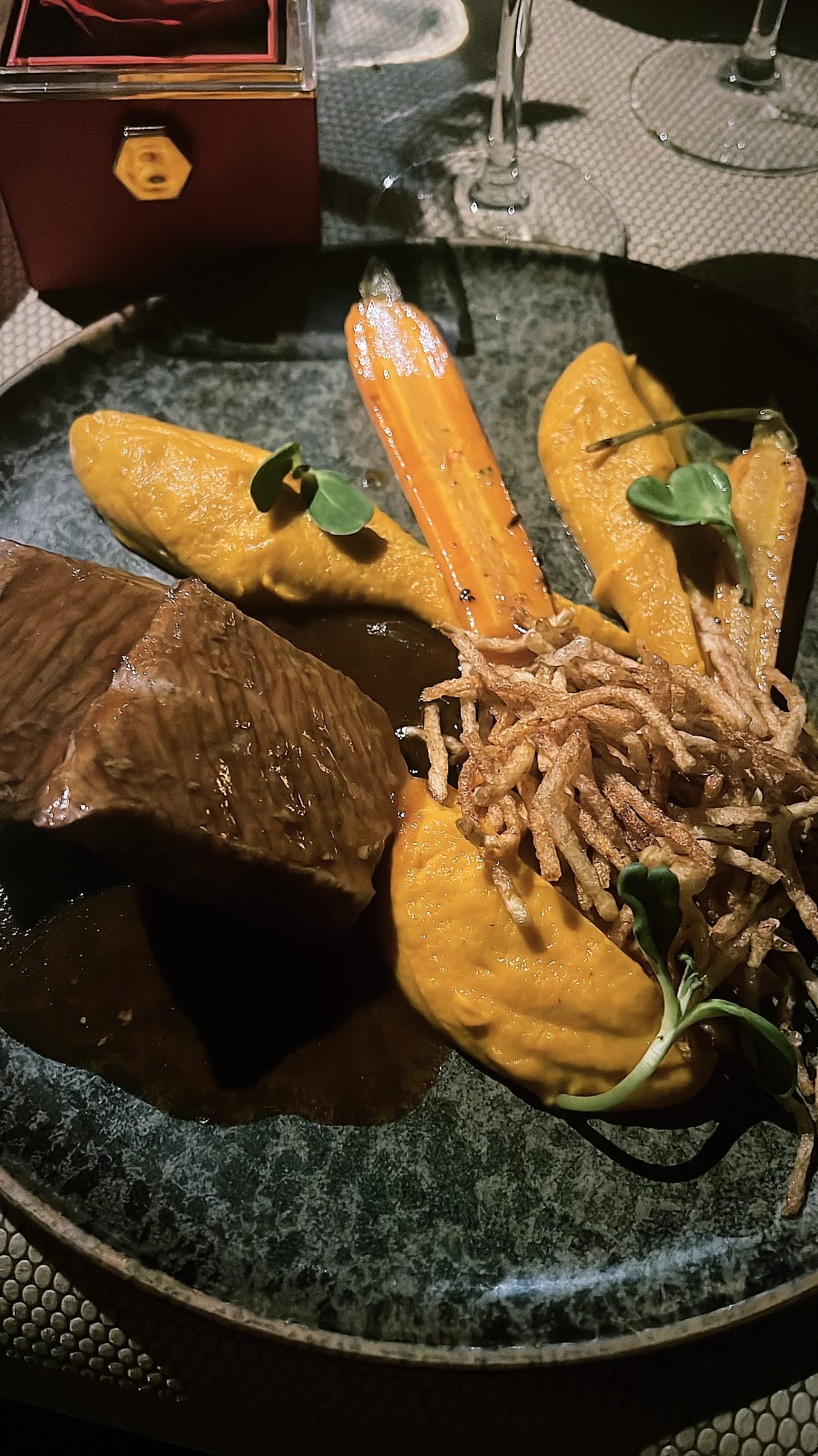 Première venue au restaurant soirée magique du début à la fin , une cuisine riche en goût. juste somptueux 😍 Hâte de revenir !
