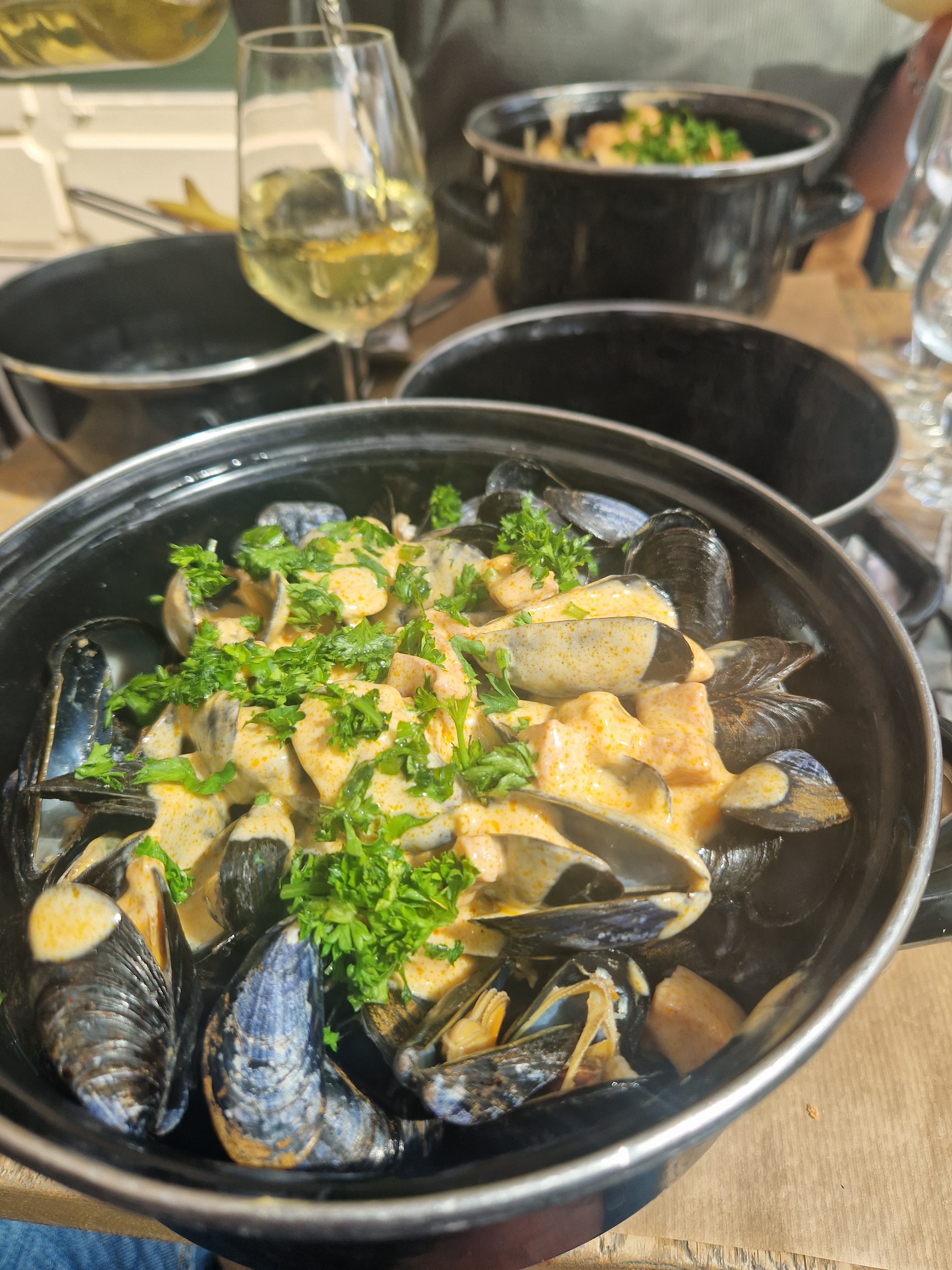 Marmite de moules excellente je conseille vraiment ! Service très bien.