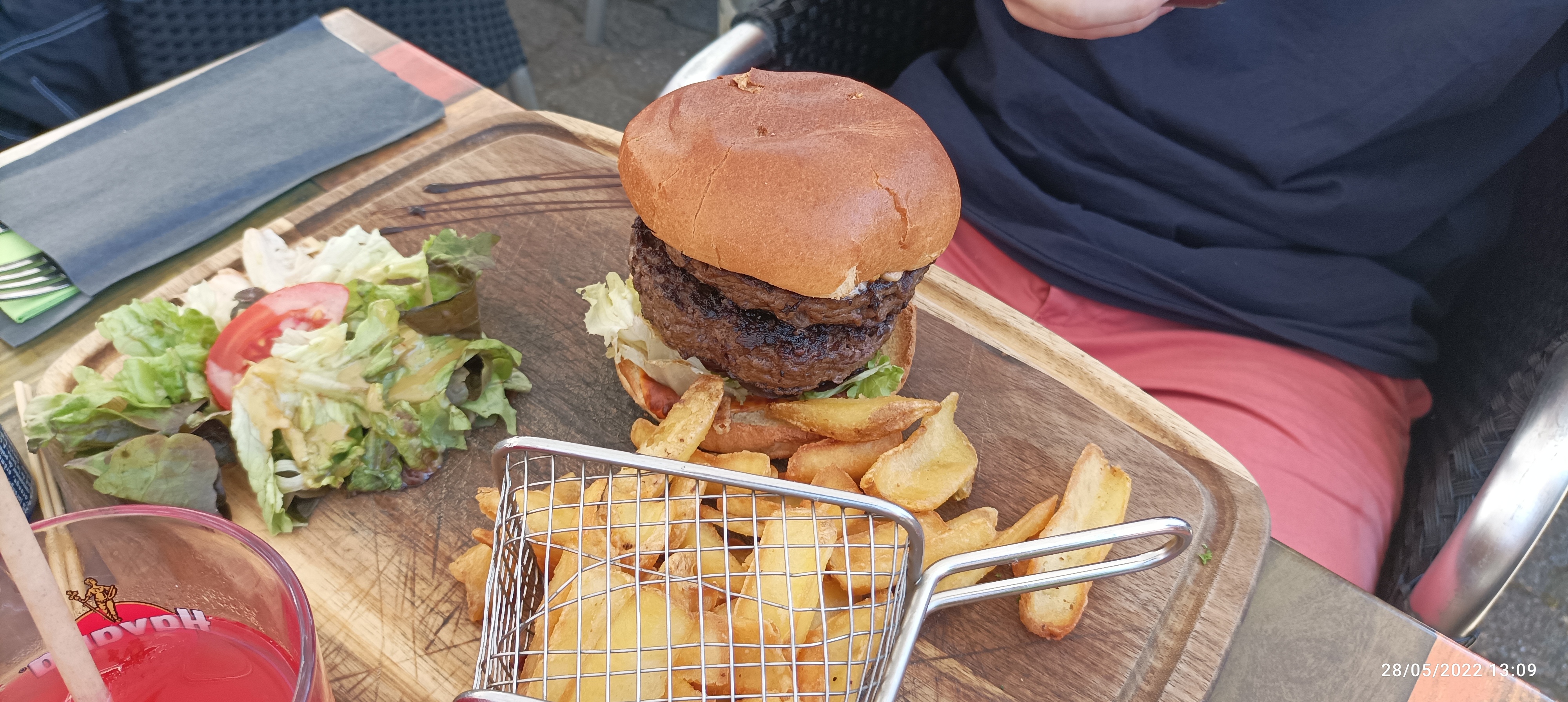 Nous y avons mangé avec nos 2 enfants, nous avons vraiment apprécié la terrasse arrière, loin du bruit et du monde, un petit coin de paradis, le plat des enfants est arrivés en 1er, nous avons pu leur donner à manger tranquillement, puis manger nos plats tranquillement aussi! Le burger au camembert était top! Mon mari avait pris des moules au bleu qui était super bonne aussi. Les plats enfants sont copieux et très bon! J'ai été impressionné par la taille du burger !! Le rapport qualité prix est vraiment sympa ! Nous recommandons ce restaurant !!