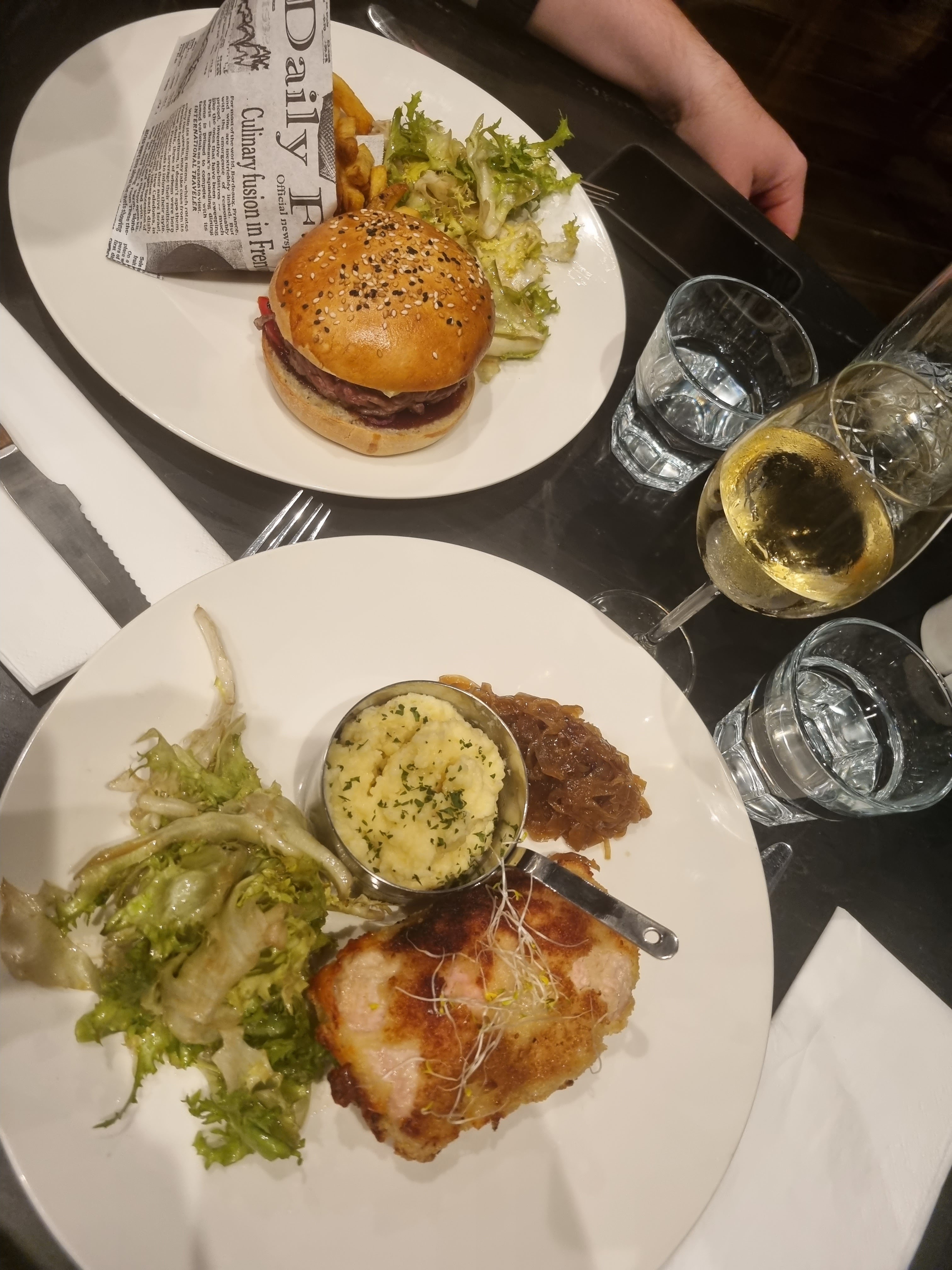 Très beau cadre et très bon service. Clients de l'hôtel. Nous avions pris le burger et le cordon bleu maison très bon ! Petit bémol sur les desserts et fromages, dommage car ça aurait été parfait ! Pour l'assiette de fromages, il y a 3 minuscules bouts cf photo pour 7euros50 ça fait vraiment très cher !!!! Et la profiterole, le chou était limite rassis.