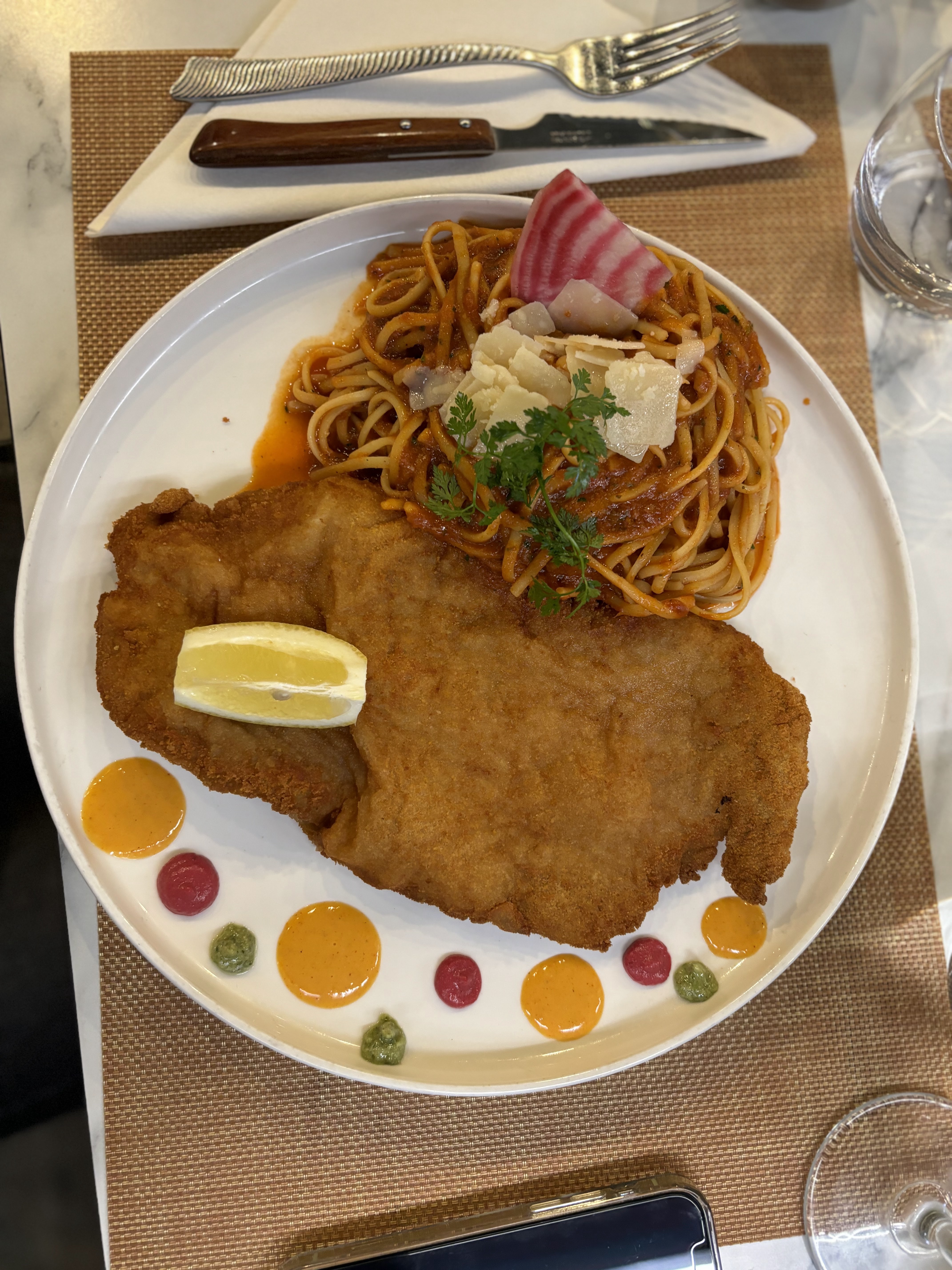 L'escalope milanaise était très bonne et les accompagnement aussi et surtout la portion est bien. Petite mention a Yannis très gentil ca fait plaisir.