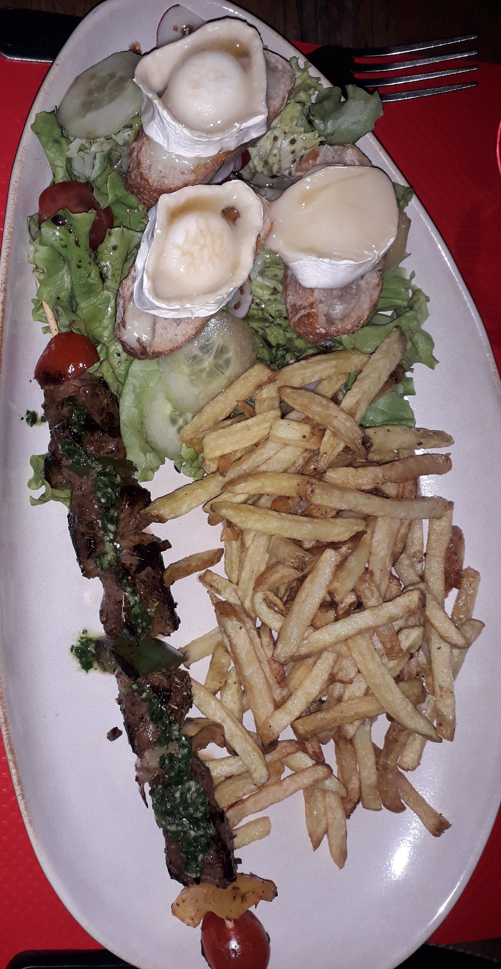 Nous avons découvert cet établissement par hasard en rentrant chez nous, la vision de la cave de maturation de la viande nous a laisser présager un belle découverte. La formule du jour comprenait une salade de foie de volaille en entrée, brochette de boeuf et frites maison . La salade était super . Les brochettes hyper tendres et goûteuses. On a terminé par des profiteroles maison par pure gourmandise. Si vous passez par là, arrêtez vous.