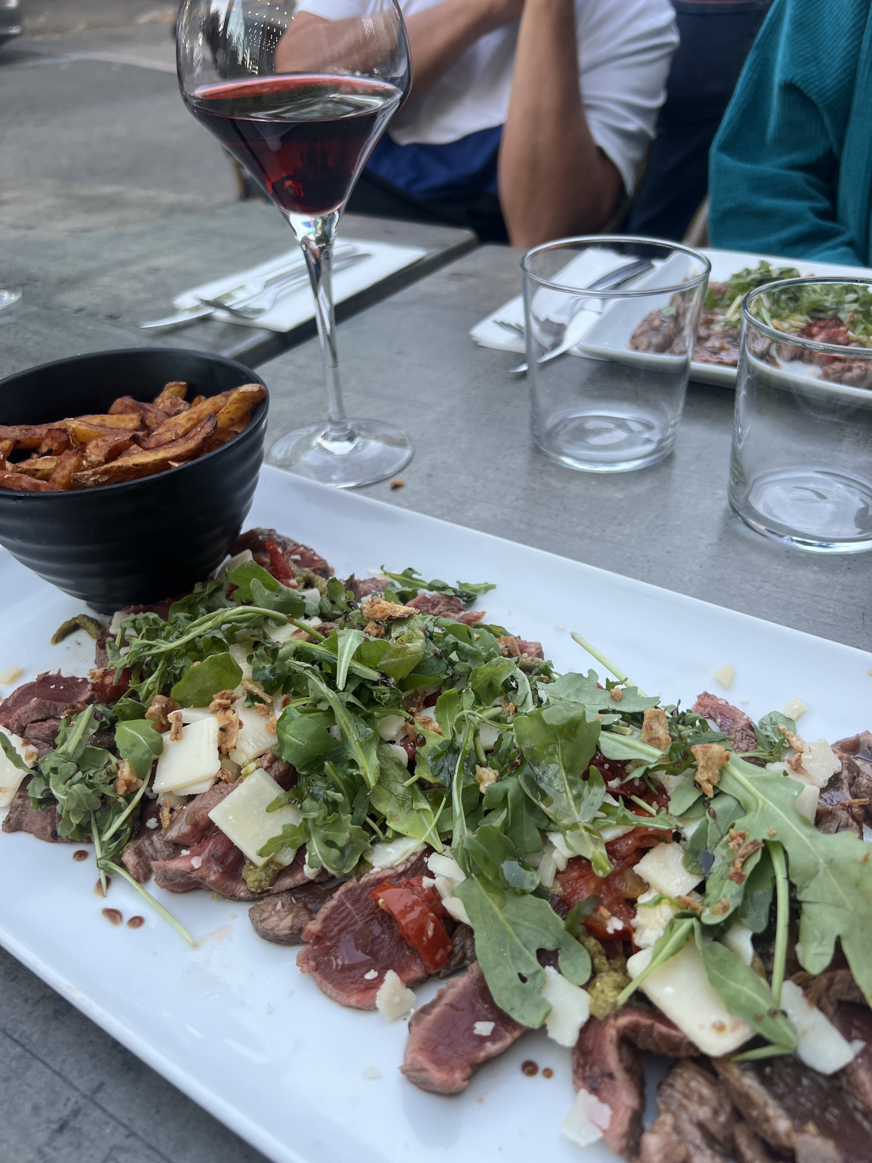 2 verres de viognier + 6 spritz (peu généreux) + 1 planche de bonnes charcuteries diverses avec pain = 69€. Un service agréable et enjoué mais une addition à la parisienne un peu trop salée à notre goût.