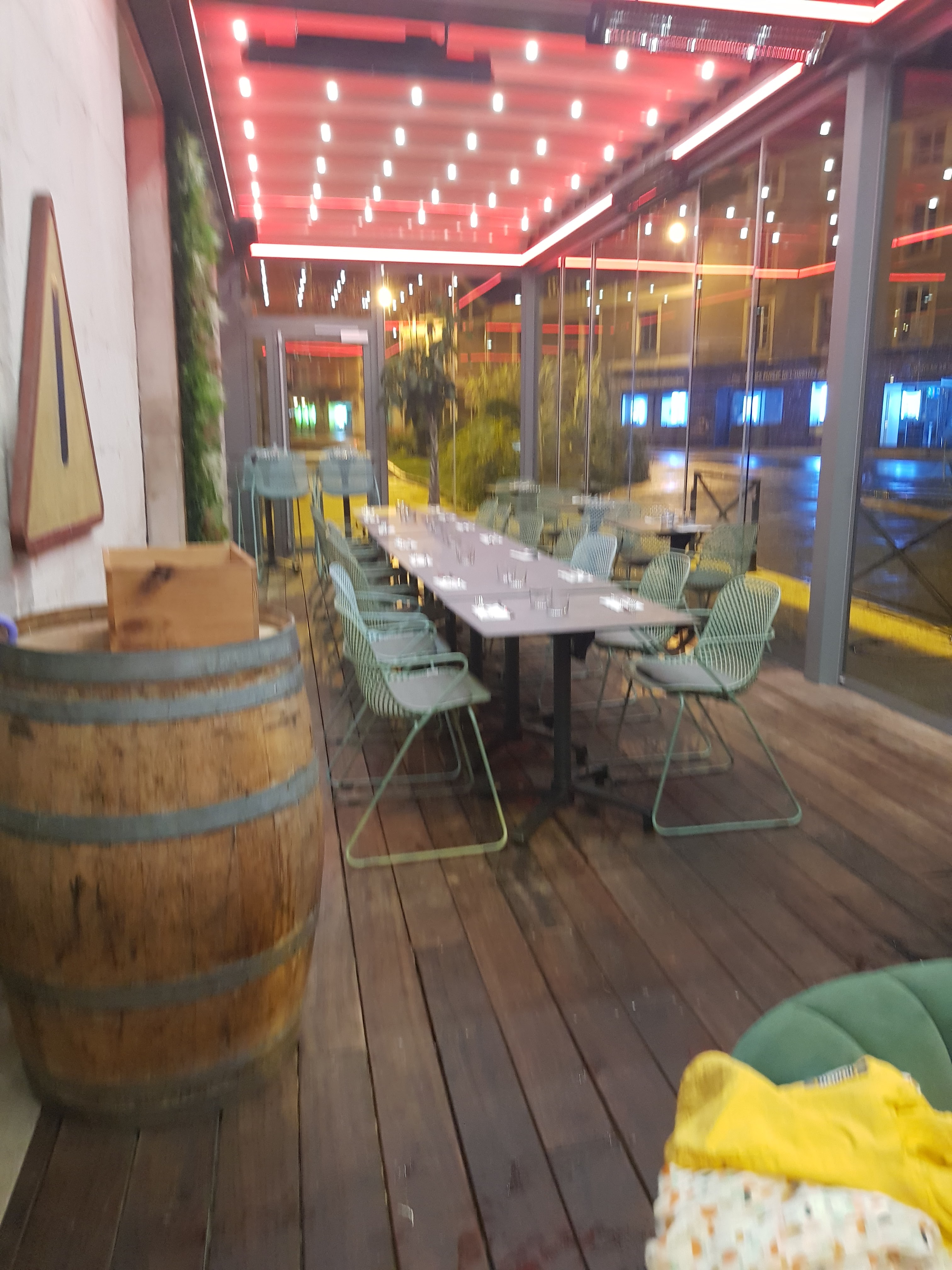 Lieu très convivial,éclairage nocturne très agréable, jeune personnel accueillant. Menu à 26euro correct et varié.
