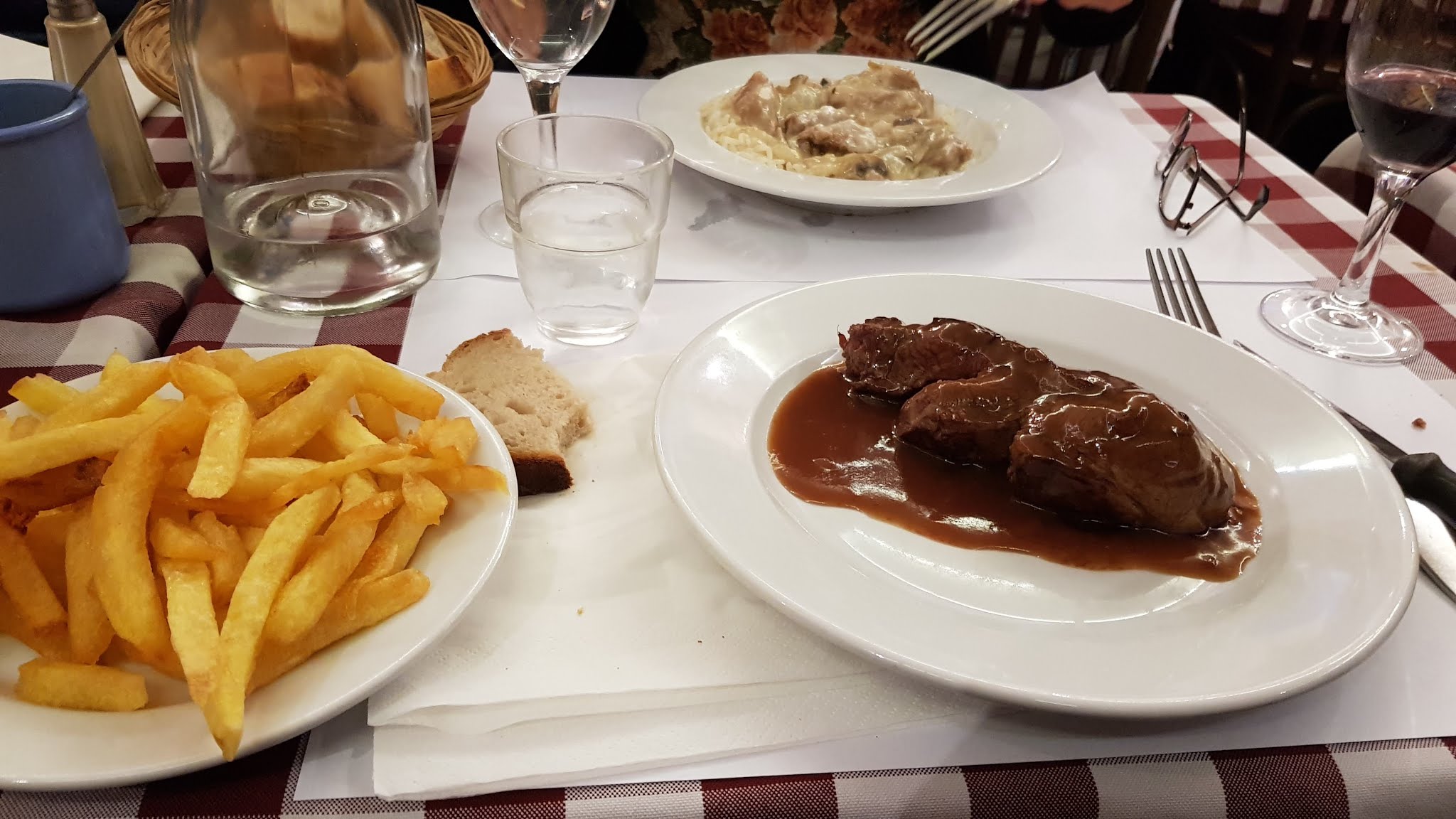 Le filet de boeuf est tendre mais les terrines en entrée et les frites sont un peu grasses. On en ressort avec quelques impressions de lourdeur....