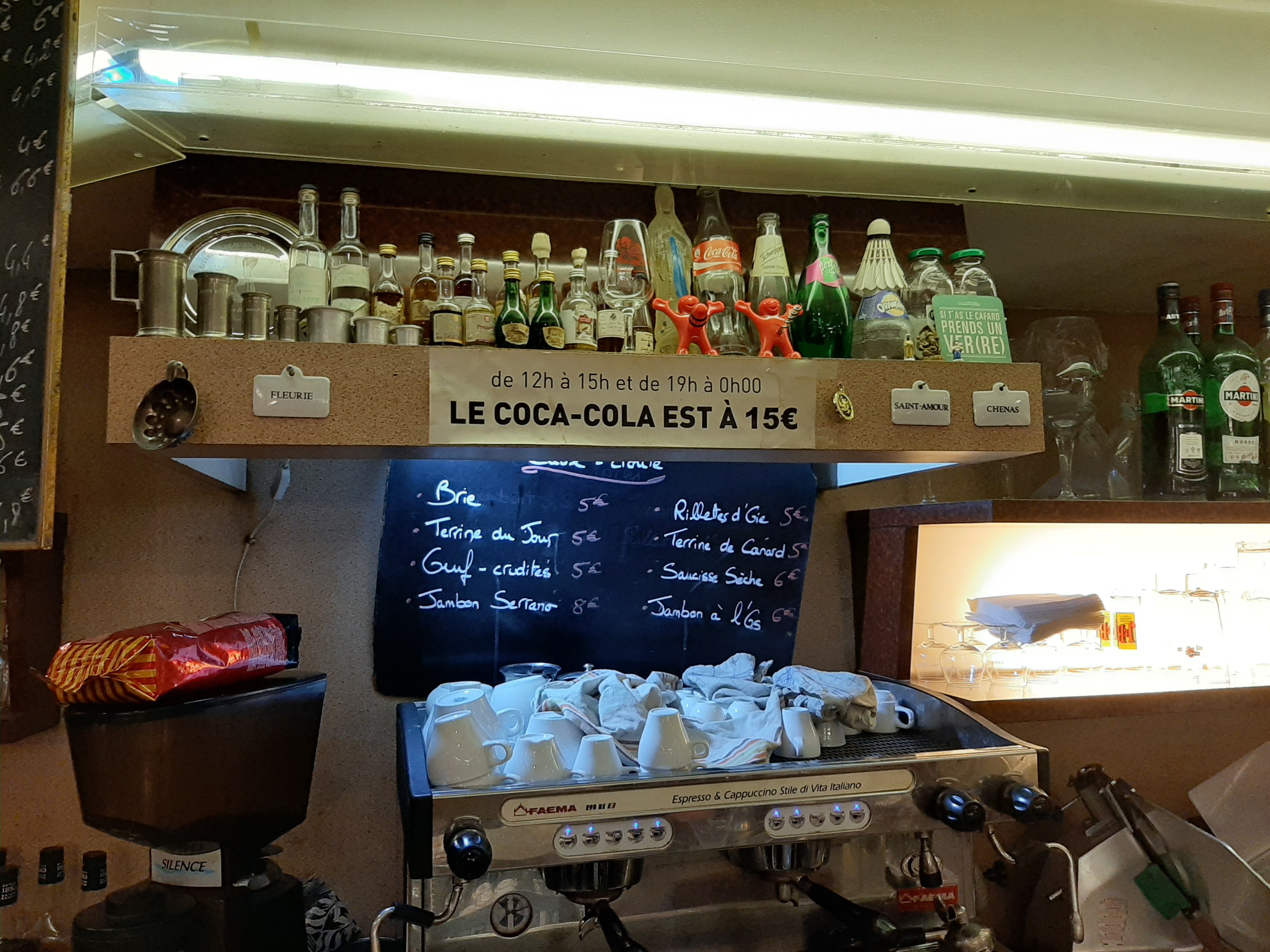 Pour ceux qui aiment le Coca, passez votre chemin car ici il est à 15€ ! Pour les autres ils devraient trouver leur bonheur. Cuisine traditionnelle de bonne facture qui change tous les jours, petits vins, desserts maisons extra, en particulier le mille feuilles, service efficace, sans parler du chien à 3 pattes qui vous accueille à l'entrée. Beaucoup d'habitués et jusqu'à maintenant que des gens sympas et faciles d'abord. J'adoooooooooooooore.