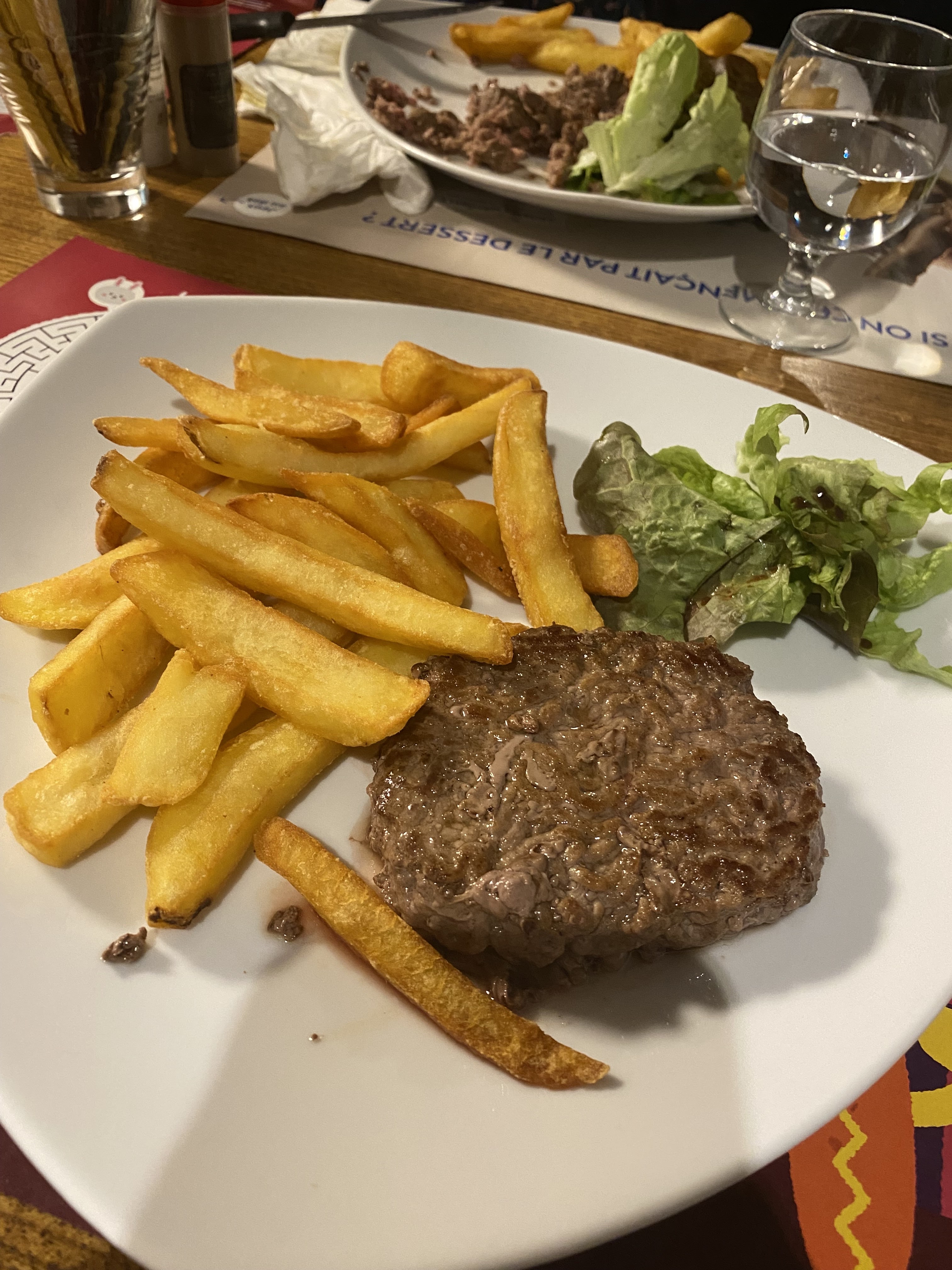 la viande était bonne le lieu bien choisi en angle de rue qui n'est pas trop bruyant par contre les frites été moyenne le service au niveau du personnel été très correct et souriant