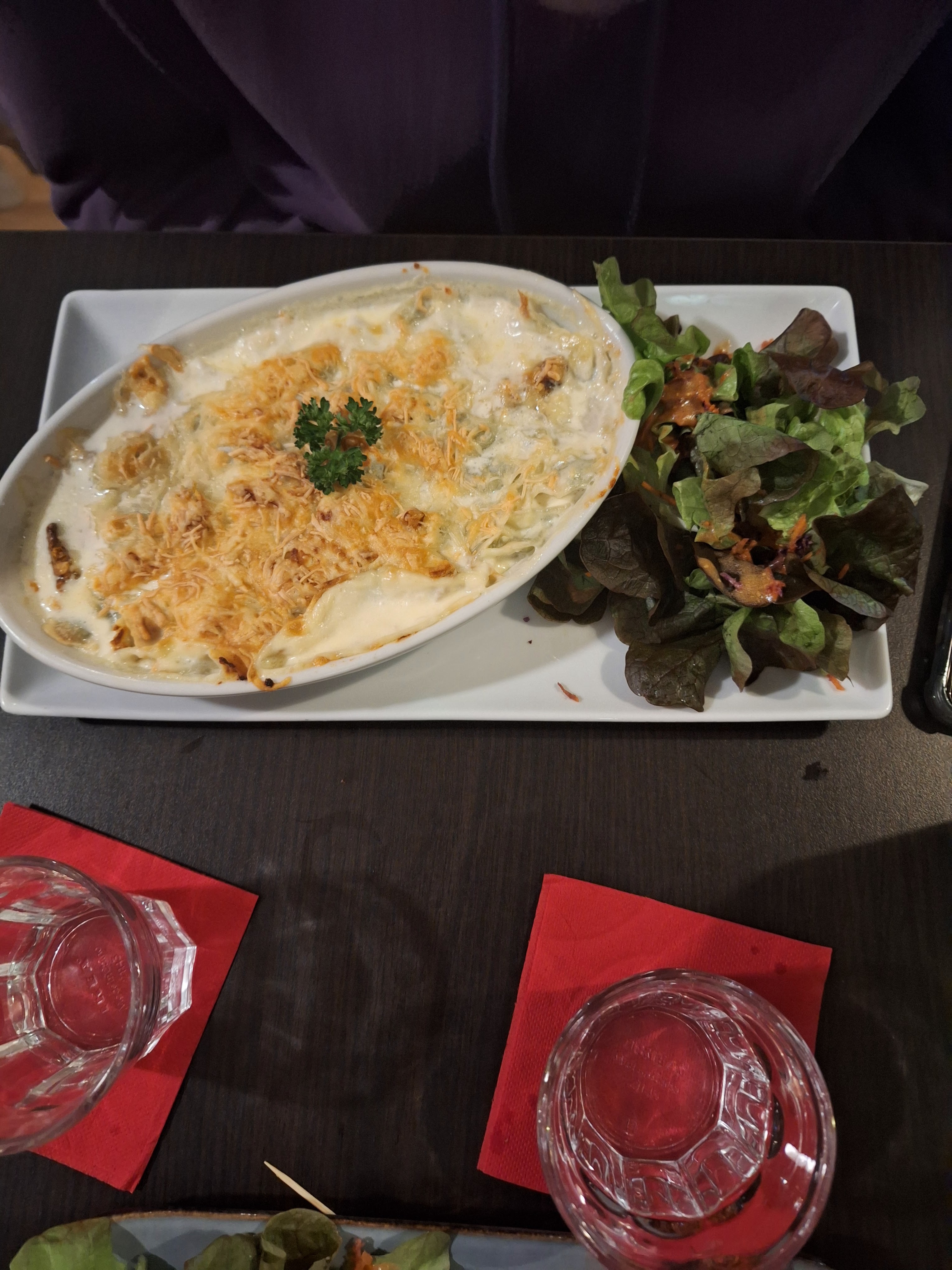 Très bon restaurant Service soigné - Personnel sympathique Plats très bons : ravioles, entrecôte, salade etc.