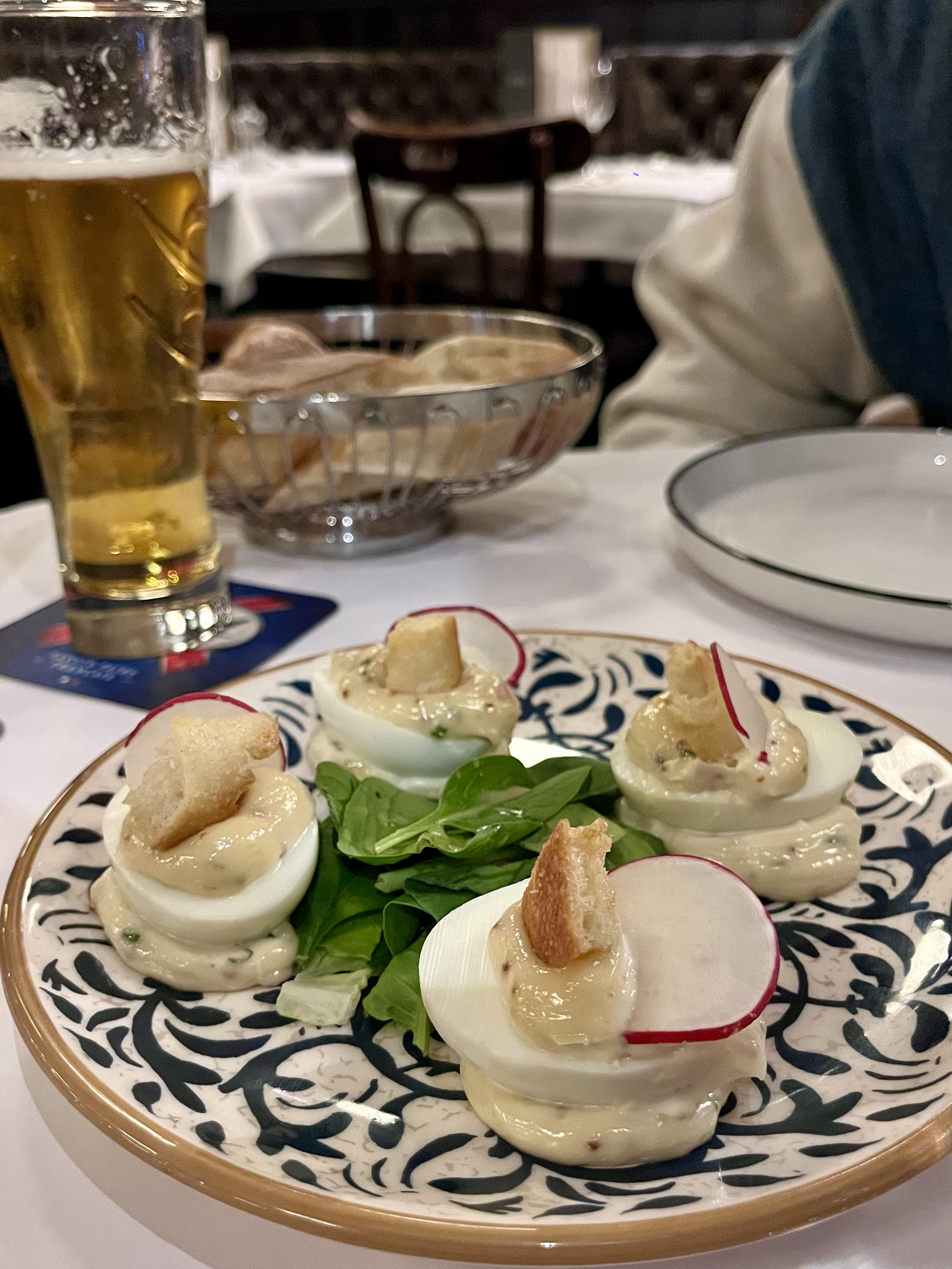 J'y ai testé pour la première fois des escargots et c'était bon! Une salle à l'etage au decor Jeux de societé, une grande salle au rez de chaussée et une terrasse chauffée. Impressionnant service, ils ouvrent tôt et ferment très tard parcontre à 2 pas de l'Arc de Triomphe il faut savoir que les prix sont un peu élevés mais raisonnables.