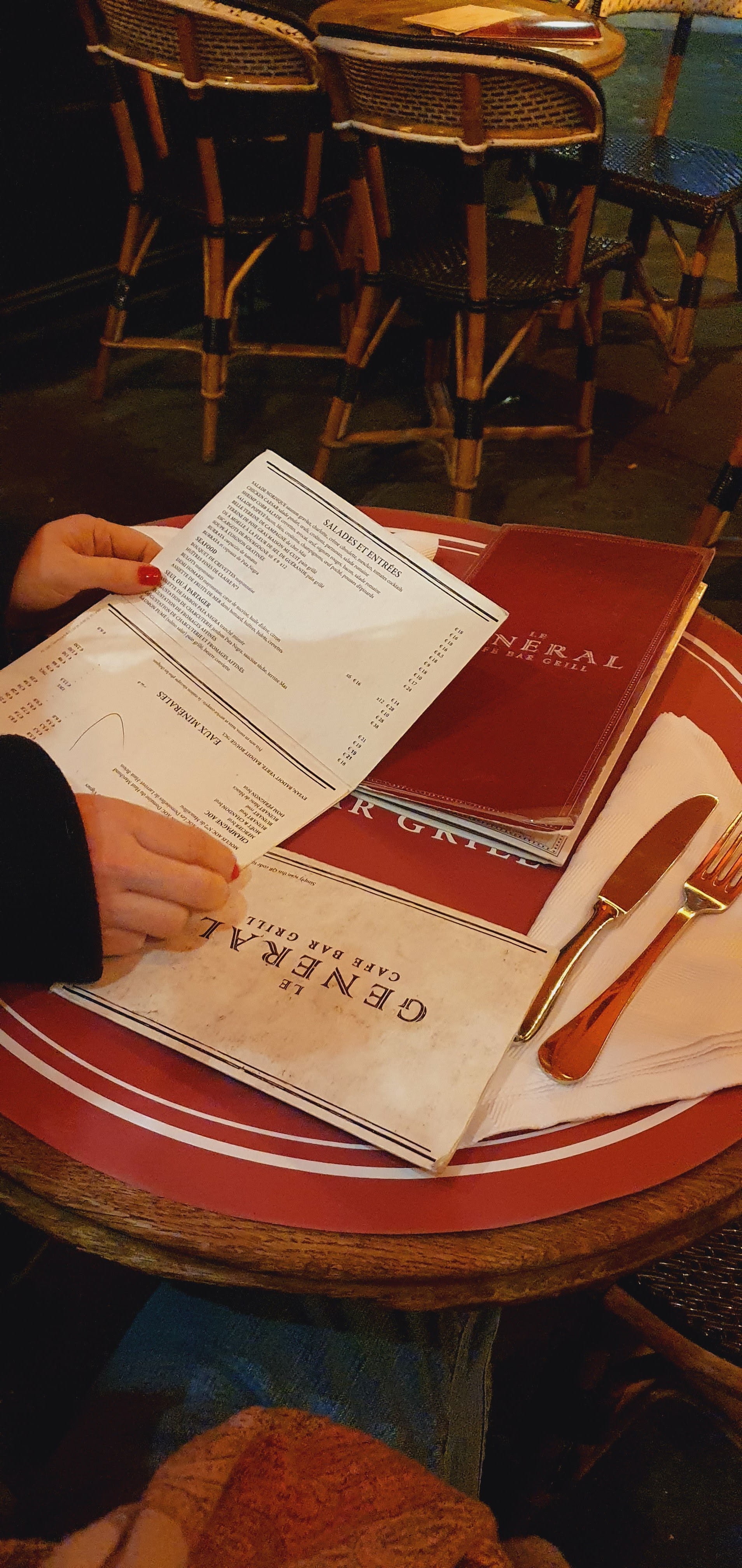 Nous sommes allés deux fois au Général. Service de qualité, ce qui devient rare à Paris. Super cuisine et les plats du jour son délicieux.