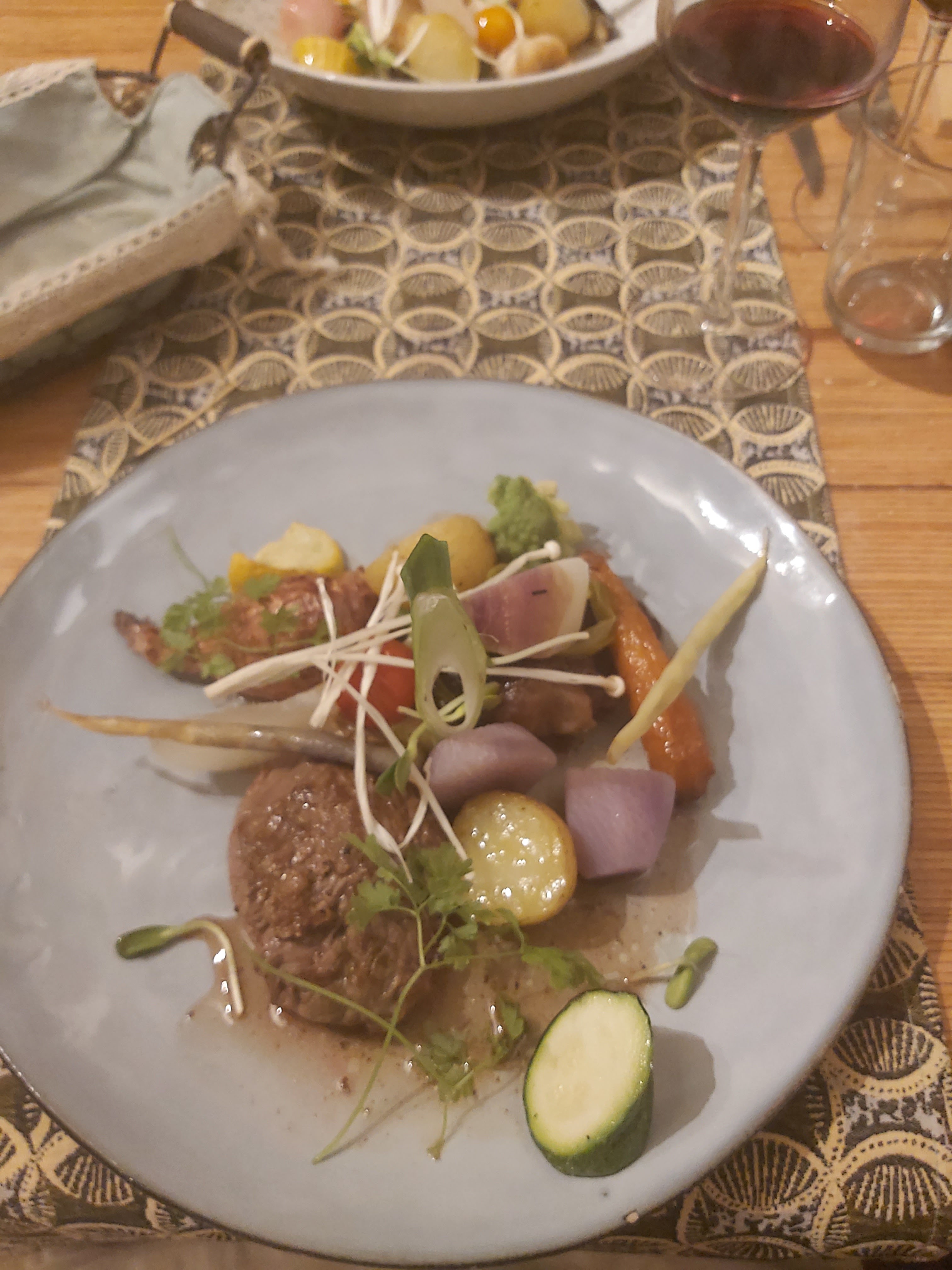 Nuit à Bécherel au Logis de la Filanderie, et dîner au Genty Home, c'était l'accord parfait. Le cadre, la déco, la bonne humeur et la gentillesse des équipes, le menu du chef avec un équilibre parfait entre les légumes et le poisson et la viande et des tarifs très raisonnables. Bref, c'était super; dommage qu'on habite un peu loin en Ardèche pour y retourner.