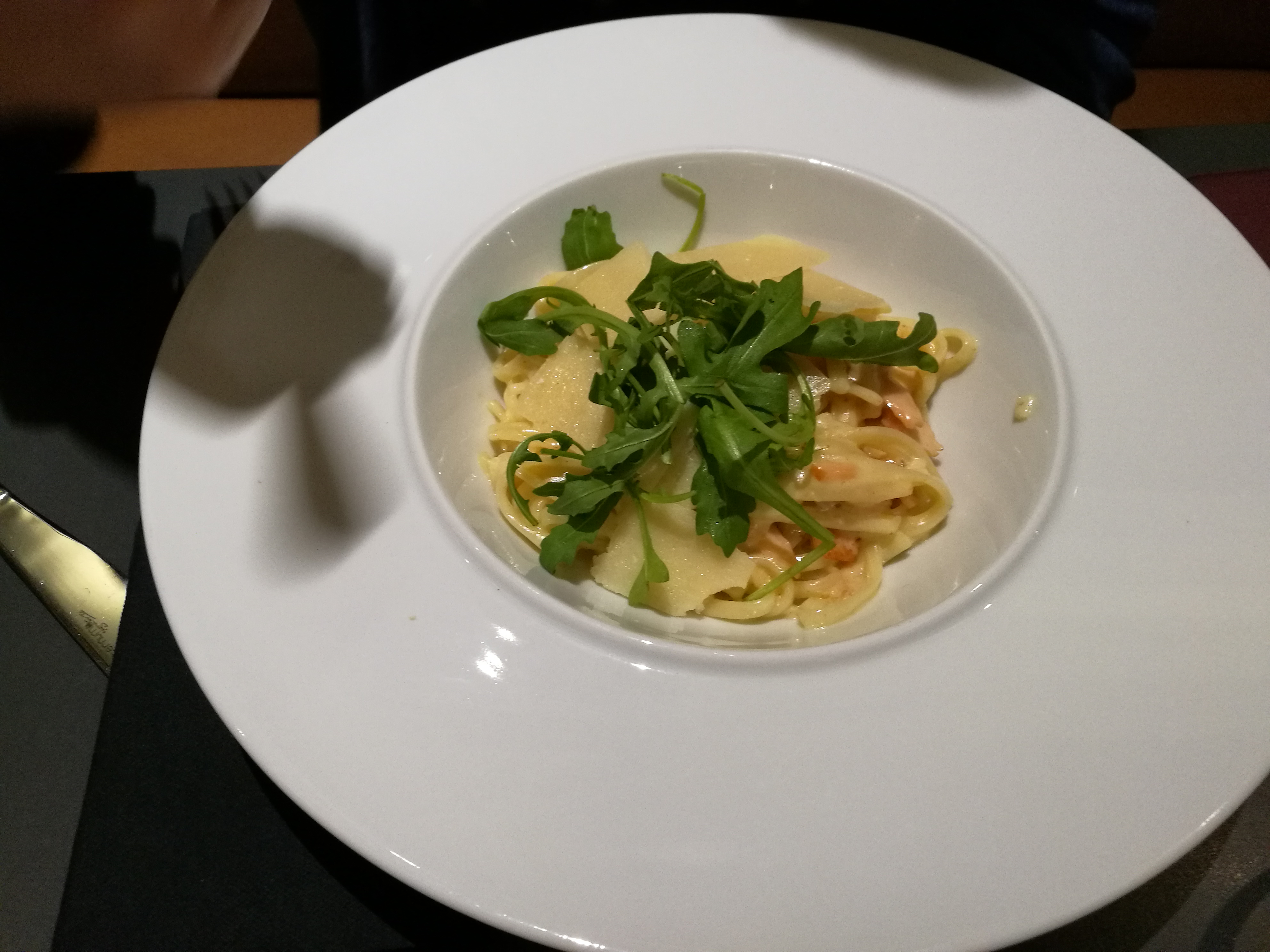 Ce restaurant possède une forte sympathique décoration! L'ambiance qui en émanait était chaleureuse, cela est en parti dû aux serveurs qui etaient tous agréables. Les linguines au saumon fumé étaient excellentes! (Juste un peu salé, dû au saumon fumé.) Et le hamburger était tout aussi goûtu, avec ses deux steak et ses bonnes frites. La crème brûlée était bonne, ce qu'on pourrai attendre d'une crème brûlée. Et la clémentine aux épices, une vraie surprise à essayer! Et pour finir je dirai que nous avons ici un très bon rapport qualité/prix !