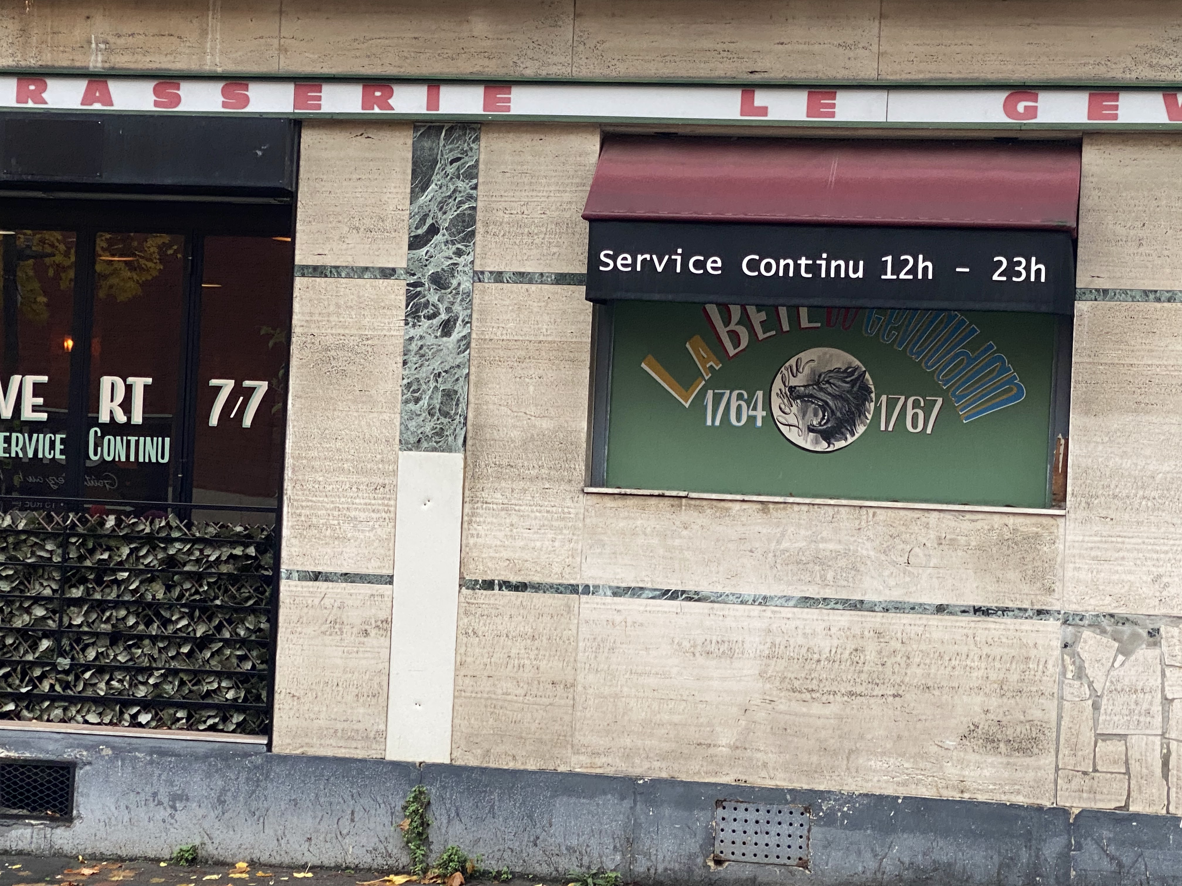 C'est un restaurant de quartier qui a changé quelques fois de propriétaires au cours des dernières années. Nous y avons déjeuné aujourd'hui de plats traditionnels, tartare de boeuf, salade, frites, pavé de rumsteak, panna cota, et crème brûlée. Je ne peux faire que des compliments, les frites sont maison et préparées au dernier moment(raison pour laquelle nous avons un peu attendu), mais nous ne nous en plaignons pas! La salade, juste avec un peu de vinaigre balsamique, le pavé, juste la bonne épaisseur, cuisson comme attendue, viande goûteuse, mon tartare avec capres, jaune d'oeuf au dessus avec les sauces prévues pour lui, et ma crème brûlée avec le caramel fait au dernier moment, donc croustillant et tiède sur la crème bien fraîche. J'avais choisi un gris de gris pour accompagner mon repas, je l'ai, lui aussi bien apprécié. Nous avons été très bien accueillis, bien conseillés, toujours avec le sourire. Ce n'est pas la première fois que nous venons au Gevaudan, et ce repas d'aujourd'hui nous confirme que nous y retournerons avec grand plaisir. Cuisine simple mais très soignée!!