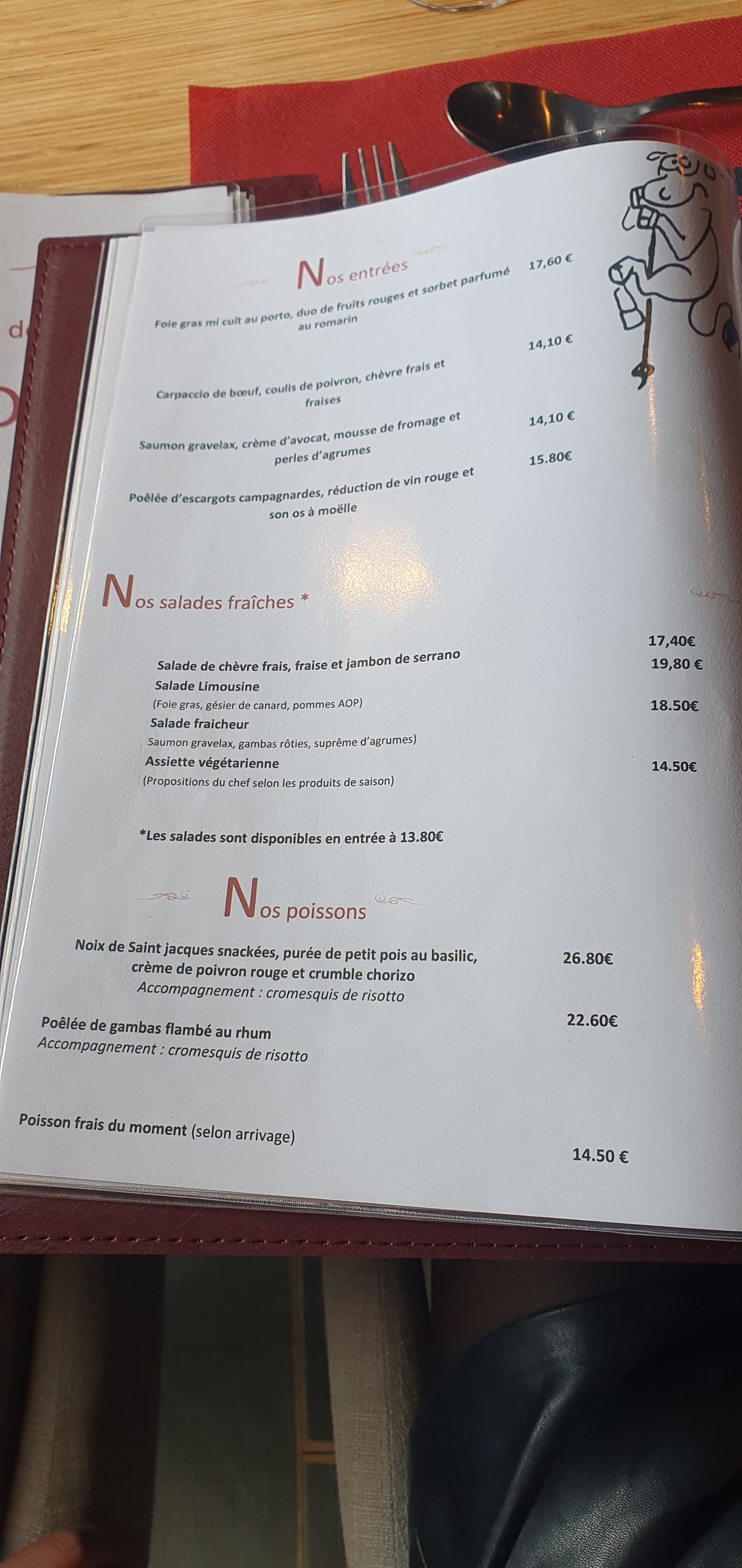 Une bonne table, sans plus sur Limoges.... Accueil sympa, décor dans l'air du temps.... Très bonne qualité de viandes limousines.. Par contre le service pêche par sa lenteur et beaucoup de # brassage de vent..... Un gros défaut, la carte des desserts n'est pas pratique à regarder car mise au mur... A moins d'être contorsionniste, pas facile à lire.... Et inutile de demander aux serveurs de la décrochée pour que cela soit plus facile... Allez s'y pour manger de la bonne viande, mais c'est tout.... Hélas.