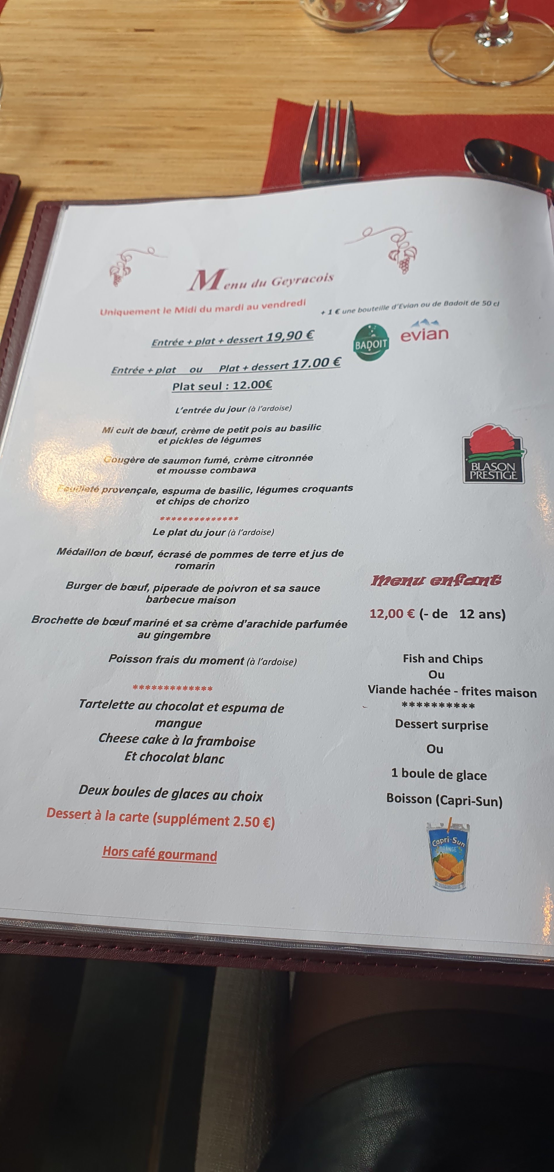 Nous avons été à 10 au Geyracois pour mon anniversaire, le chef a très bien pris soin de moi les jour avant l’anniversaire me demandant ce que je veux ect . Le jour j , nous avions une jolie table . Bien situer . Le repas était très bon moi j’avais pris une entrecôte , superbe rien à dire . Les frite aussi super bon . Ce jour ci il y avait deux serveuses . Une très gentille qui a su passer à tout nous caprice , et l’autre qui a fallut gâcher mon anniversaire. Enfin bref super soirée merci au chef , merci à cette serveuse qui a tout fait pour que cette soirée ce passe bien . Je reviendrais c’est promis 😆 .