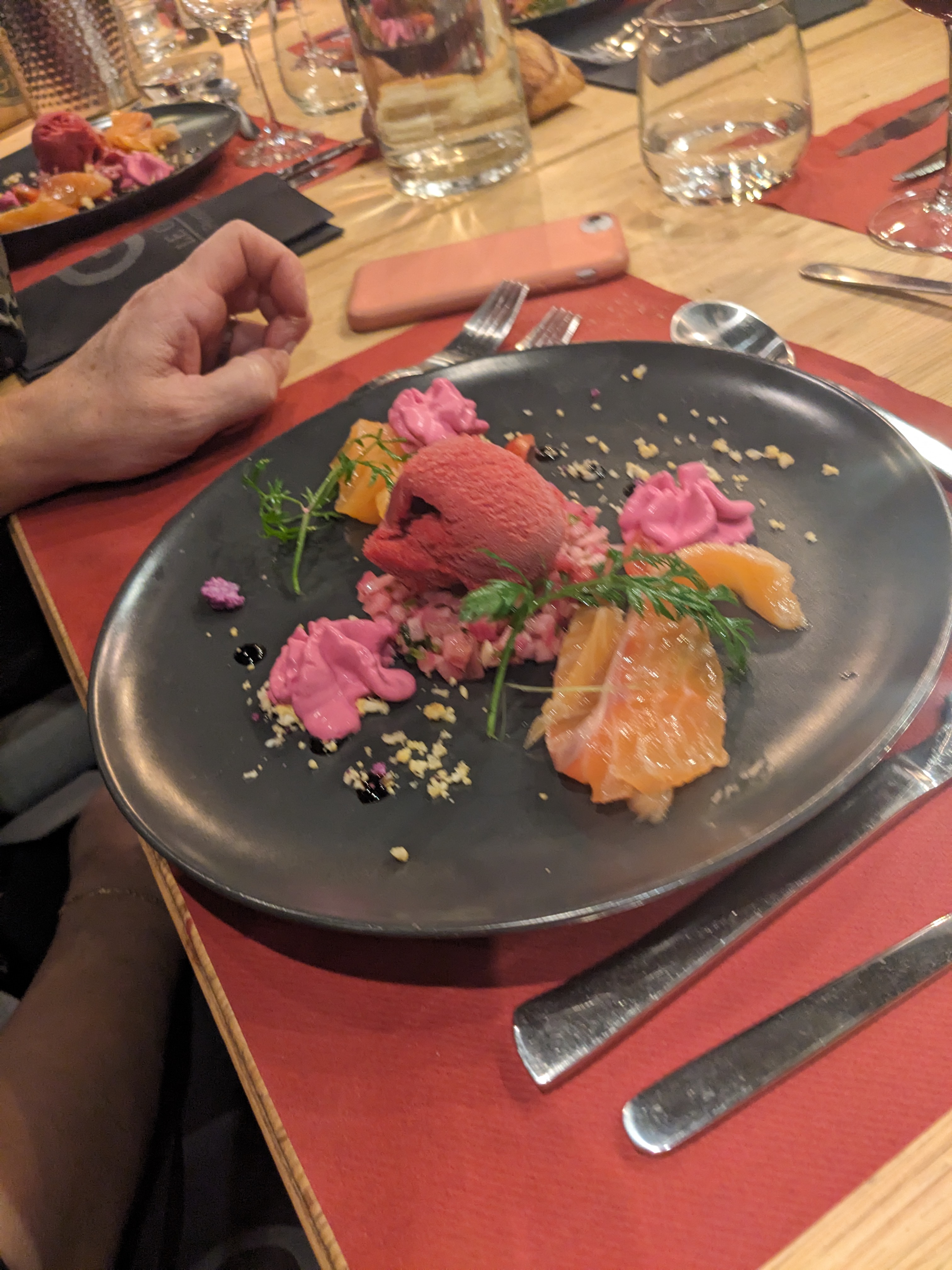 Très bon et, en prime, de jolies assiettes, de l'entrée au dessert.