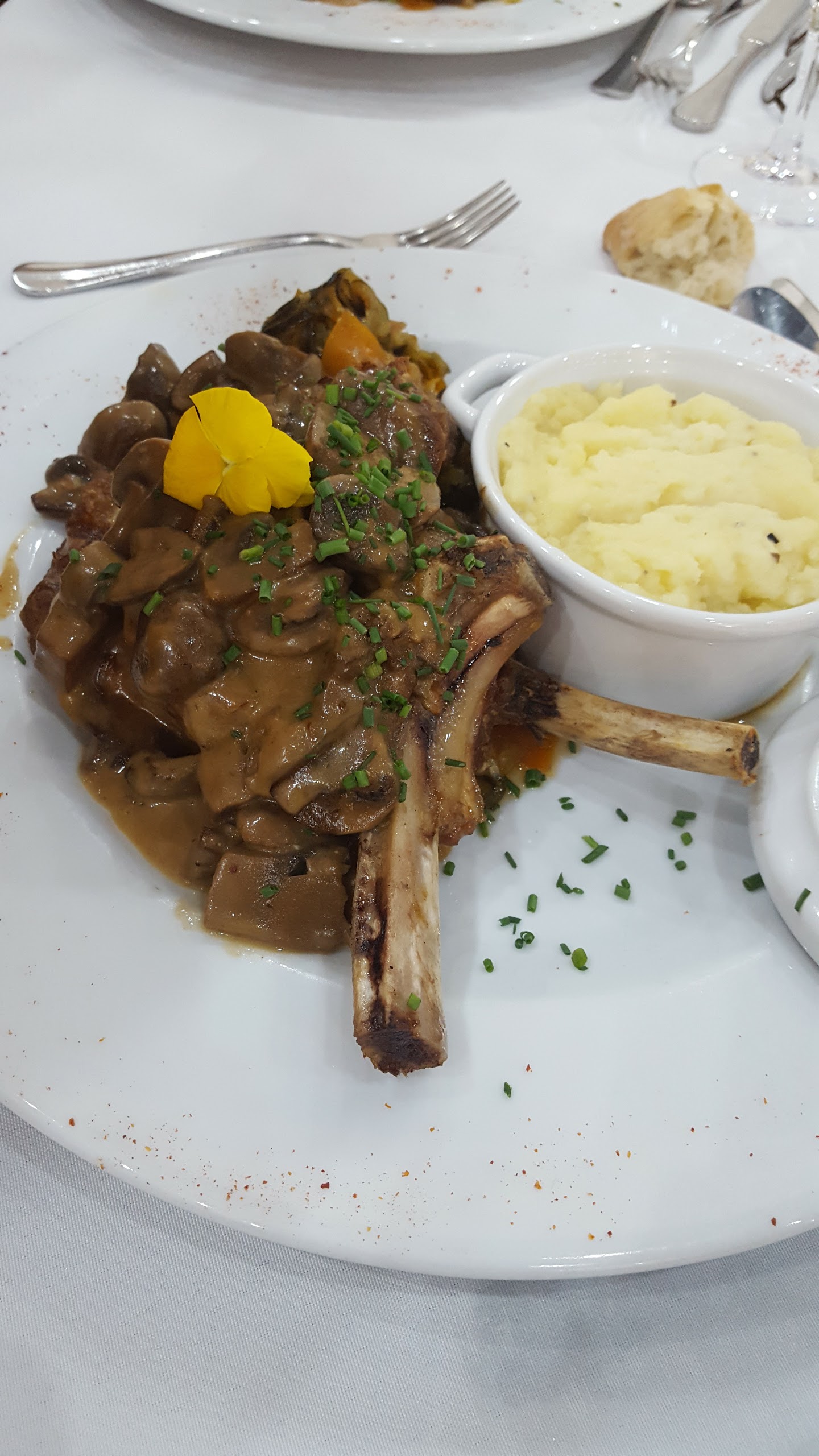 Souris d'agneau excellente. Cadre très agréable. Service amical. On était 7 pour la pause d'un enregistrement de disque.