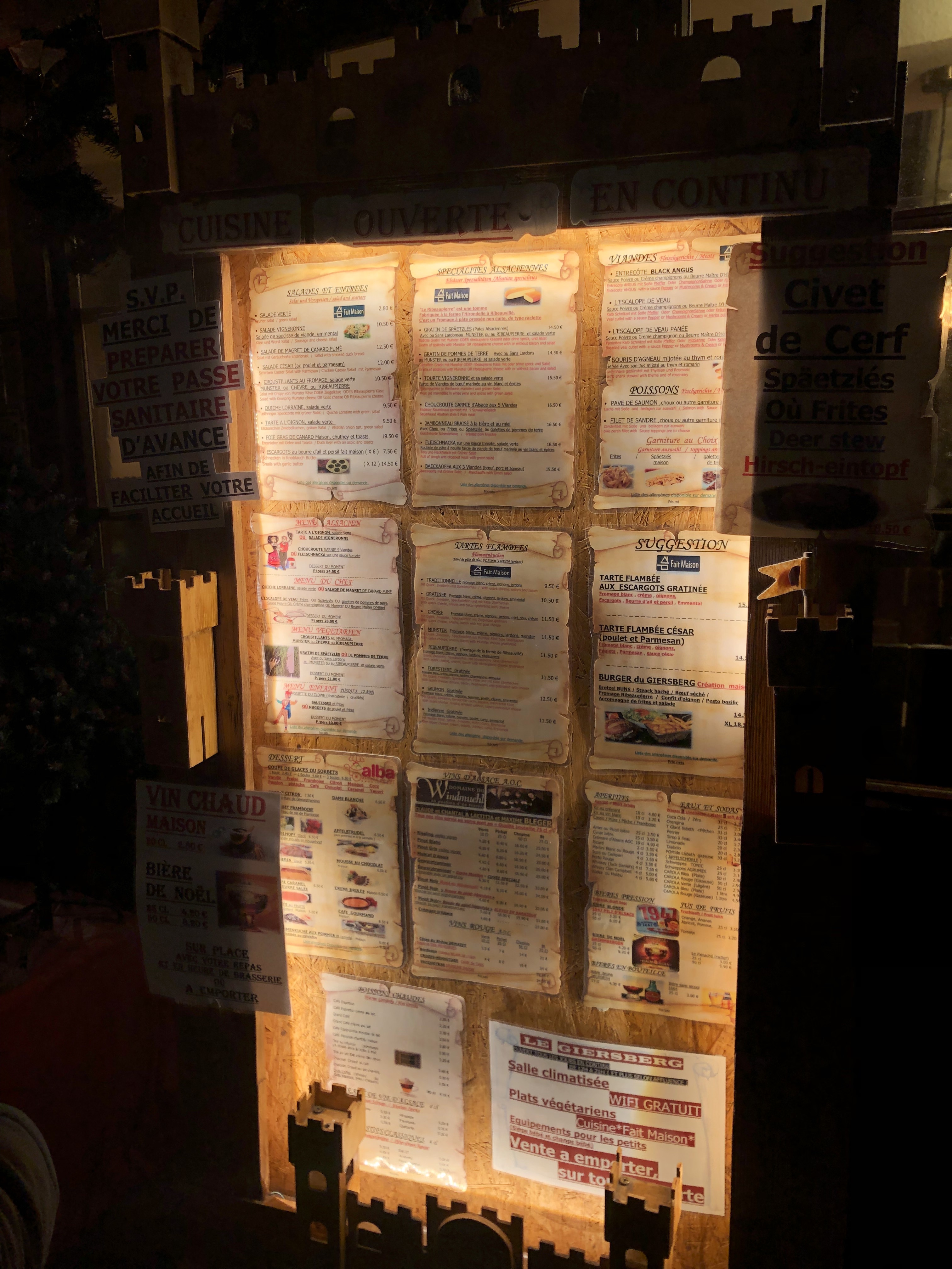 En cette période de fêtes, la réservation est obligatoire. Très belle table, le service rapide qui se fait dans une très, très bonne ambiance et d'humour. En vin blanc je vous recommande le pinot gris vieilles vignes.