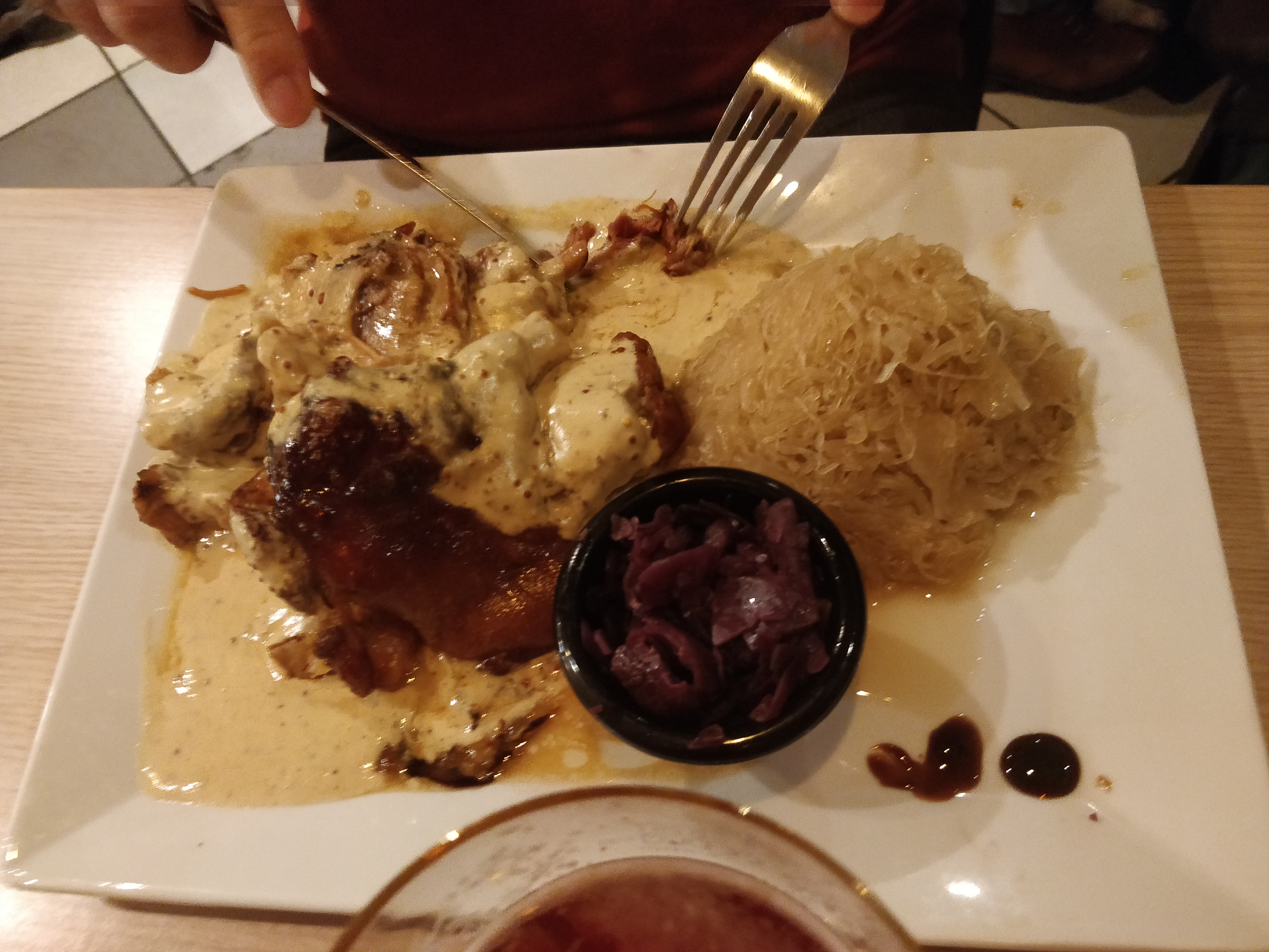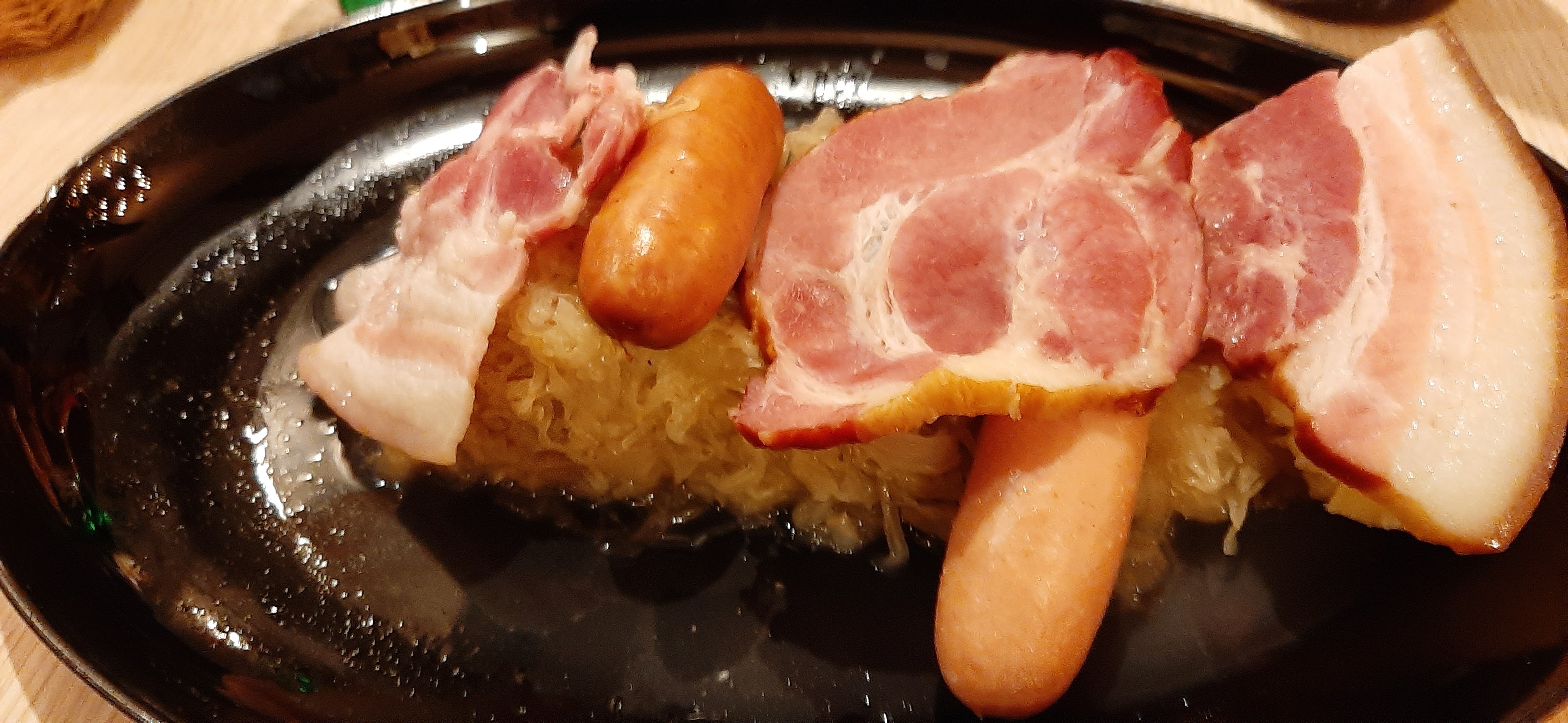 La choucroute…. C’est du fait maison! J’ai adoré le goût du chou! Nous avons passé un très bon moment. Les yeux fermés, allez y.