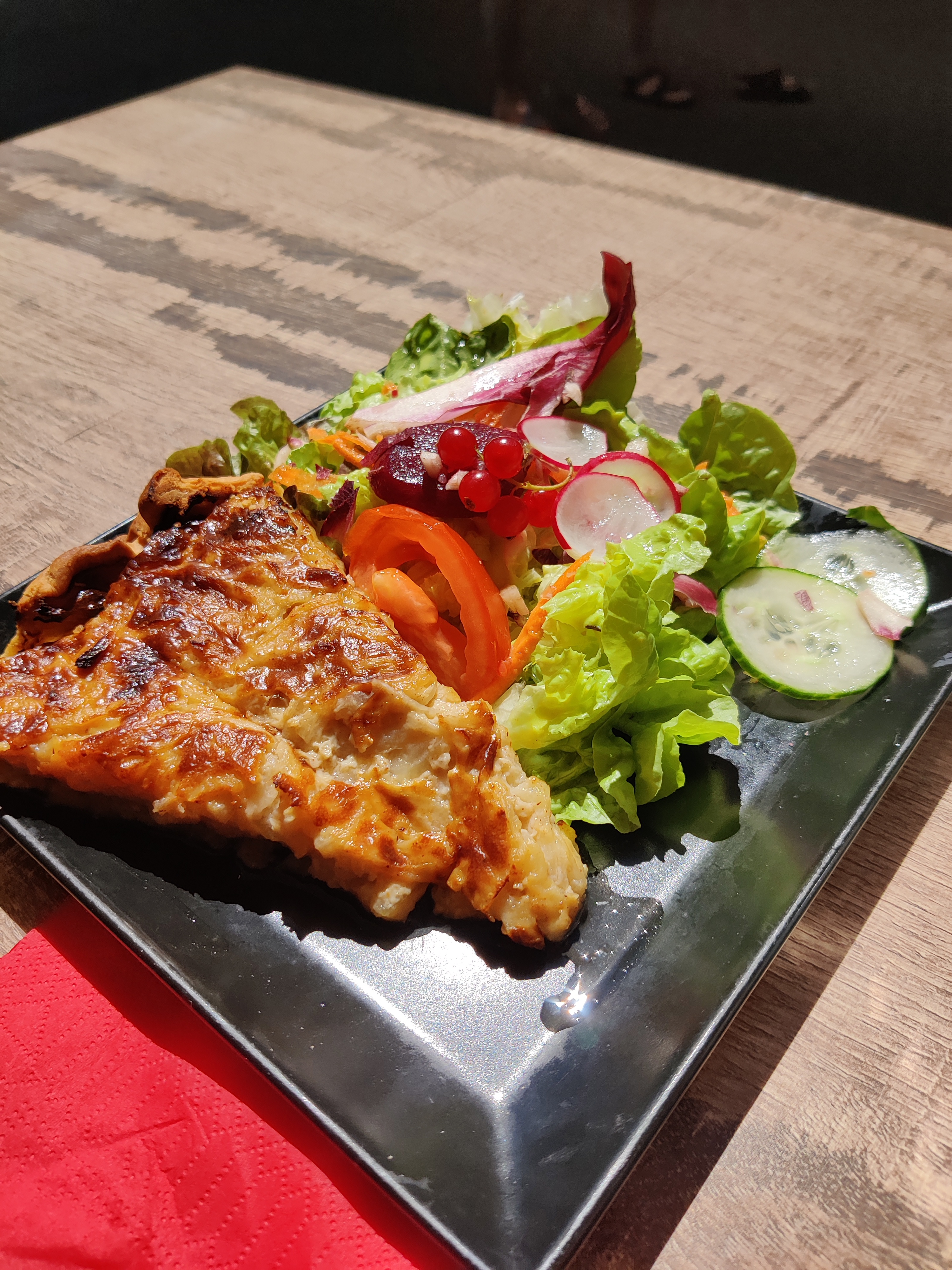 Déçu de l accueil ont avais déjà envie de partir avant de s' installé (serveuse excédé)ma tarte a l oignon épaisse manque d oignon beaucoup de crème pâte très molle pour 9euros50 accompagné de salade en sachet