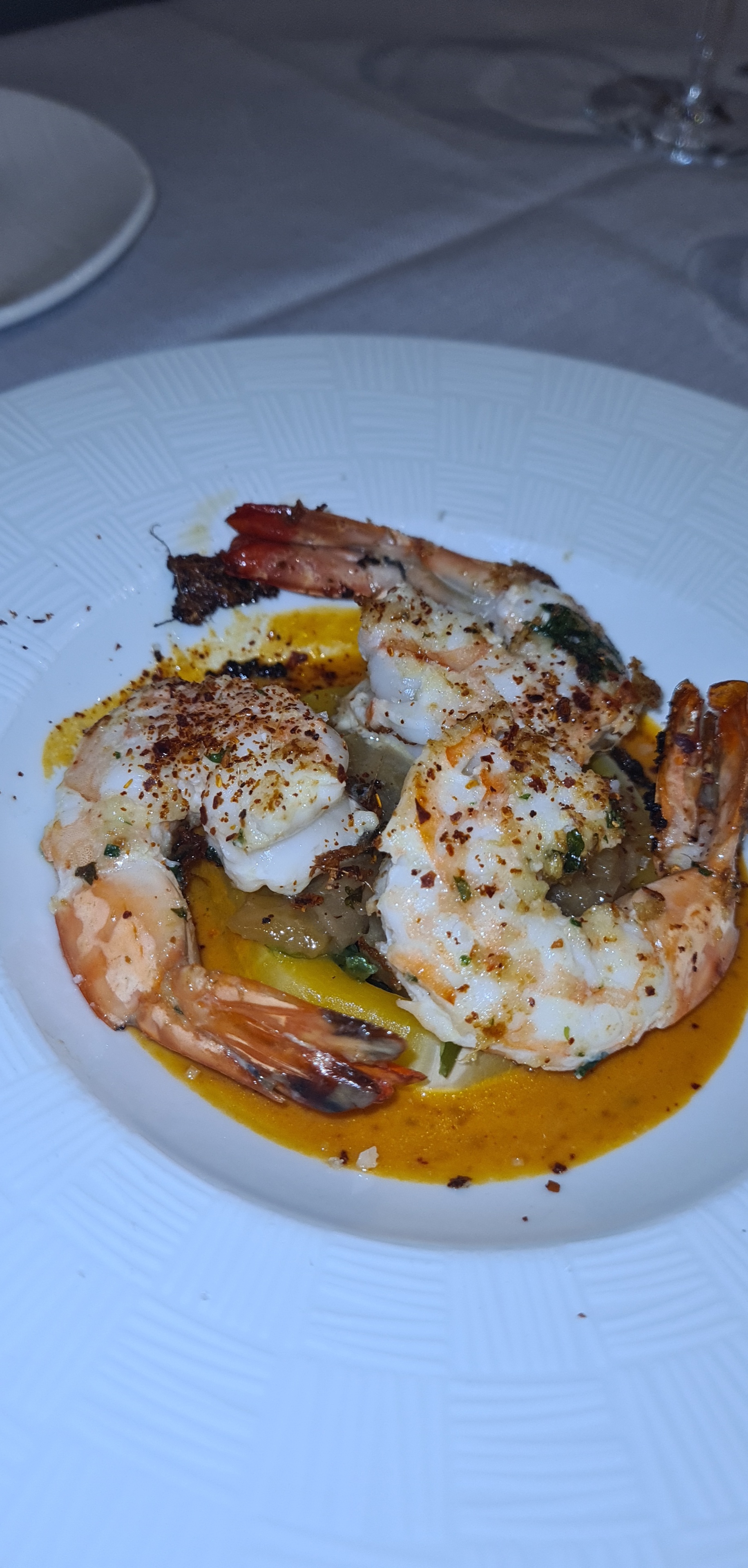 Acceuil neutre mais pas désagréable. Très bon cocktail au champagne.(le Gisèle) Nous avons beaucoup apprécié l'entrée :raviols de saumon épinards aux agrumes.beaucoup de goût,léger, parfait. Nous avons été déçus pas le plat pâtes fraiches gambas chorizo sauce au safran car la sauce ou bouillon était inexistant et cela a rendu le plat sec.les gambas étaient bonnes mais attention à la sous cuisson pour certaines.le chorizo était bon.ce manque de sauce est vraiment dommage. Pour le dessert crumble revisité cela manquait de cuisine c'était surtout de l'assemblage .il manquait le goût d'une pâte à crumble remplacé par du muesli et fruits secs.le rapport qualité prix sur le plat et le dessert n'y est pas, même pour un gastro! En espérant y retourner un jour pour pouvoir être aussi satisfaits que certains clients.on laisse 1 deuxième chance....a suivre. Bonne continuation. Au Gisèle.