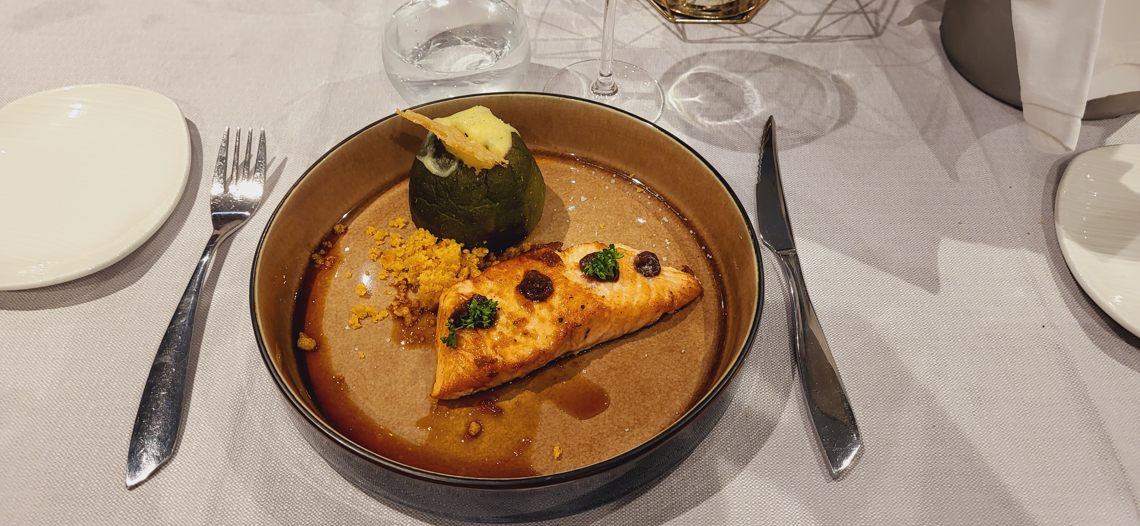 Quel merveilleux endroit pour dîner, une salle de restaurant très lumineuse, une décoration splendide et surtout une table excellente, avec un service de qualité. Il ne manque rien, je le conseille vivement