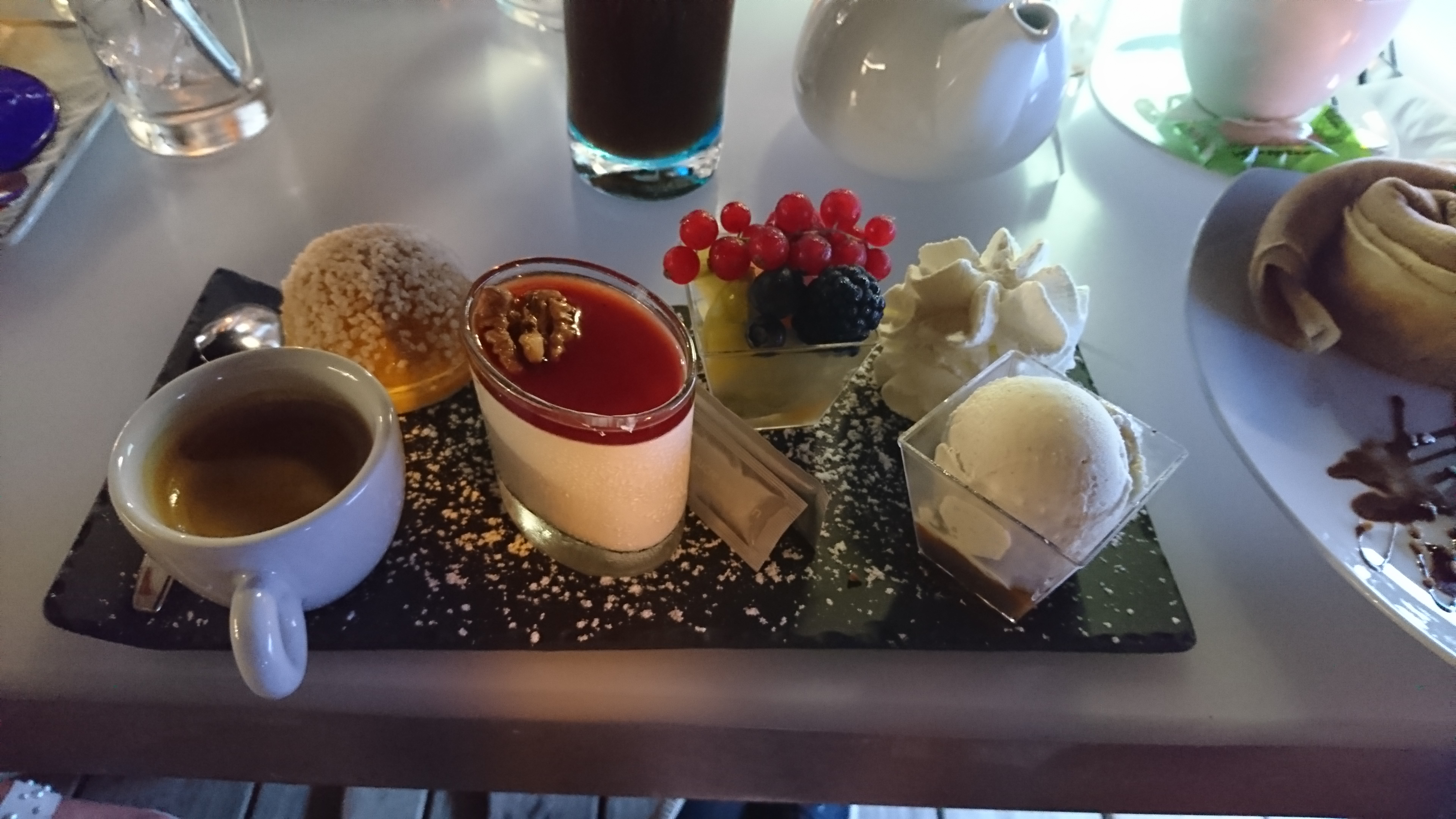 On s’est arrêtés prendre une glace, tarif raisonnable (6,50€ les 2 boules avec chantilly) et on sent vraiment les saveurs, je ne sais pas si elles sont faites maison mais elles sont excellentes on s’est régalés
