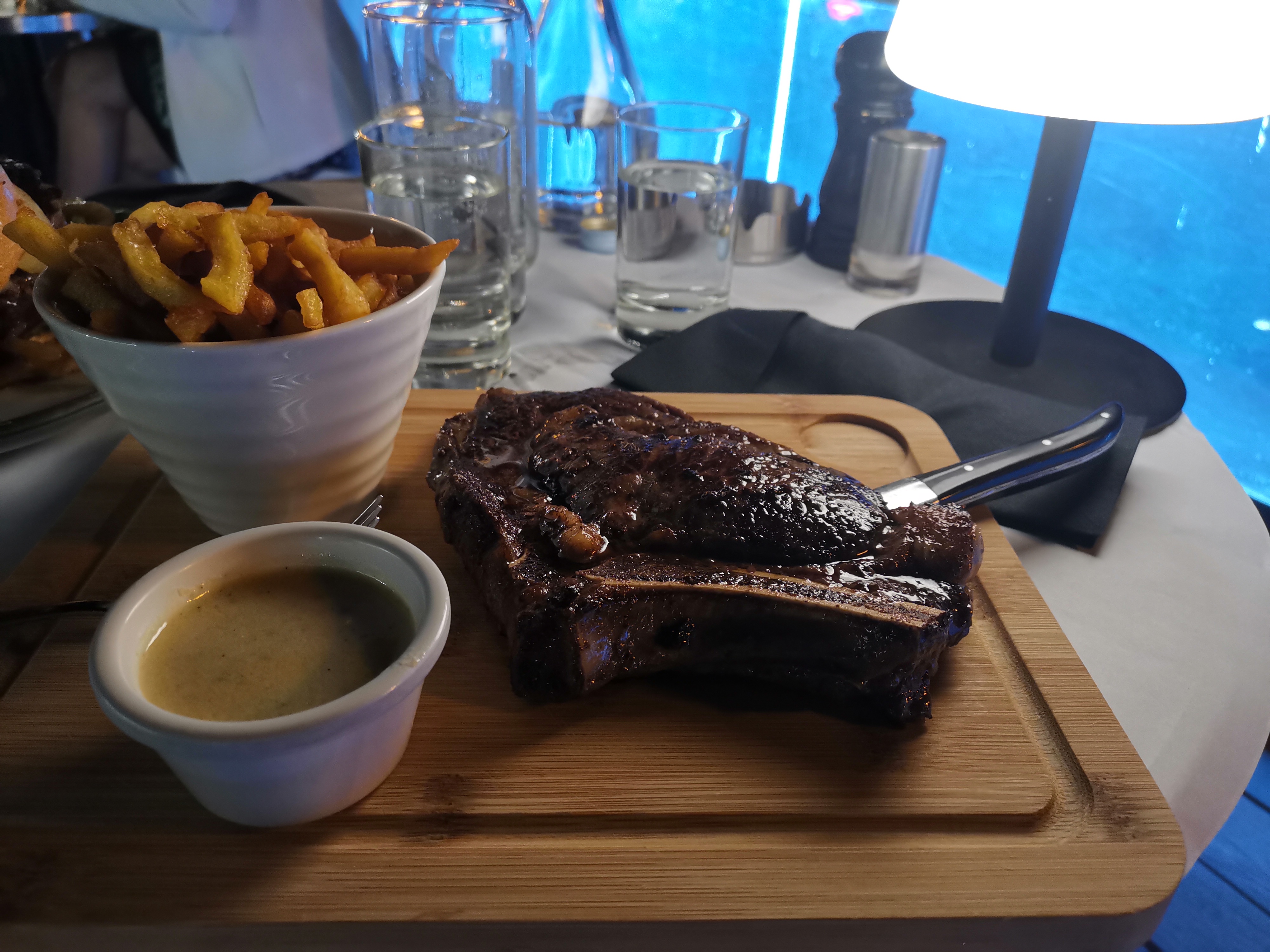Bon moment lié à l’emplacement idéal avec vue sur la marina. Très bon service, steaks de thon et hamburgers très bons. Seul bémol le prix des plats et glaces que je trouve 15% trop cher.