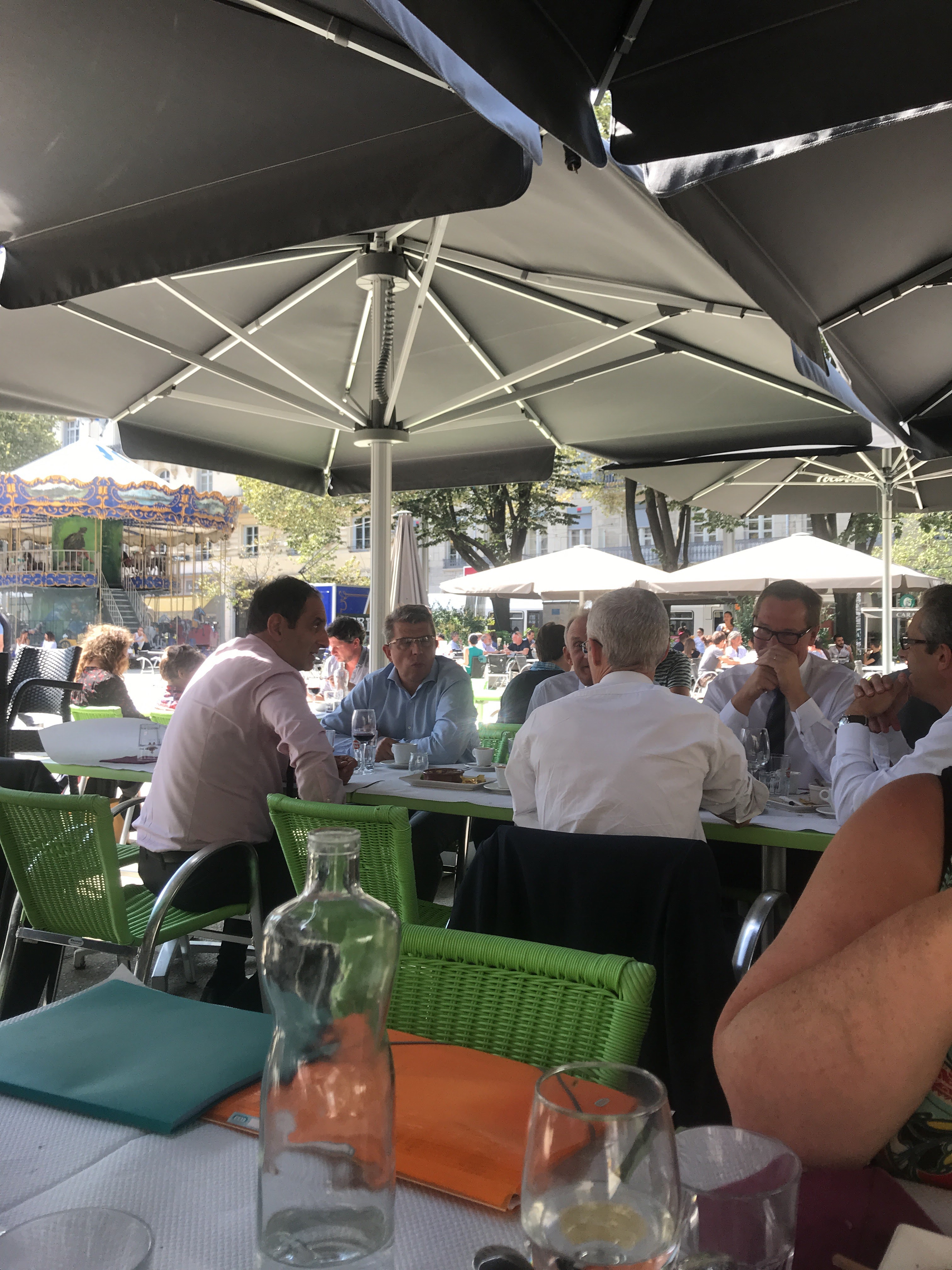 Lieu de rendez-vous incontournable de la Place de l'Hôtel-de-Ville. Menu et carte de bonne tenue. Ouvert le dimanche midi.