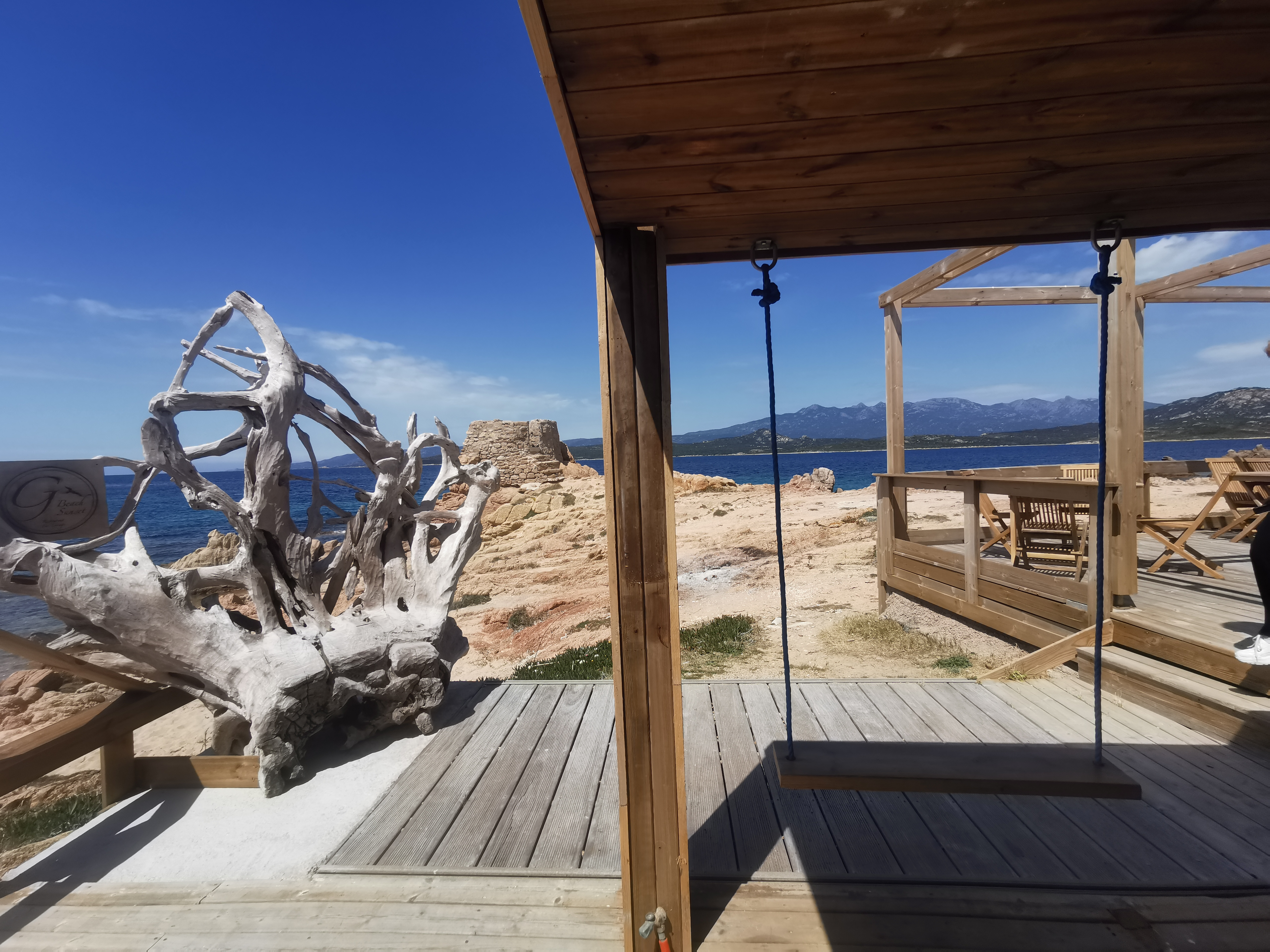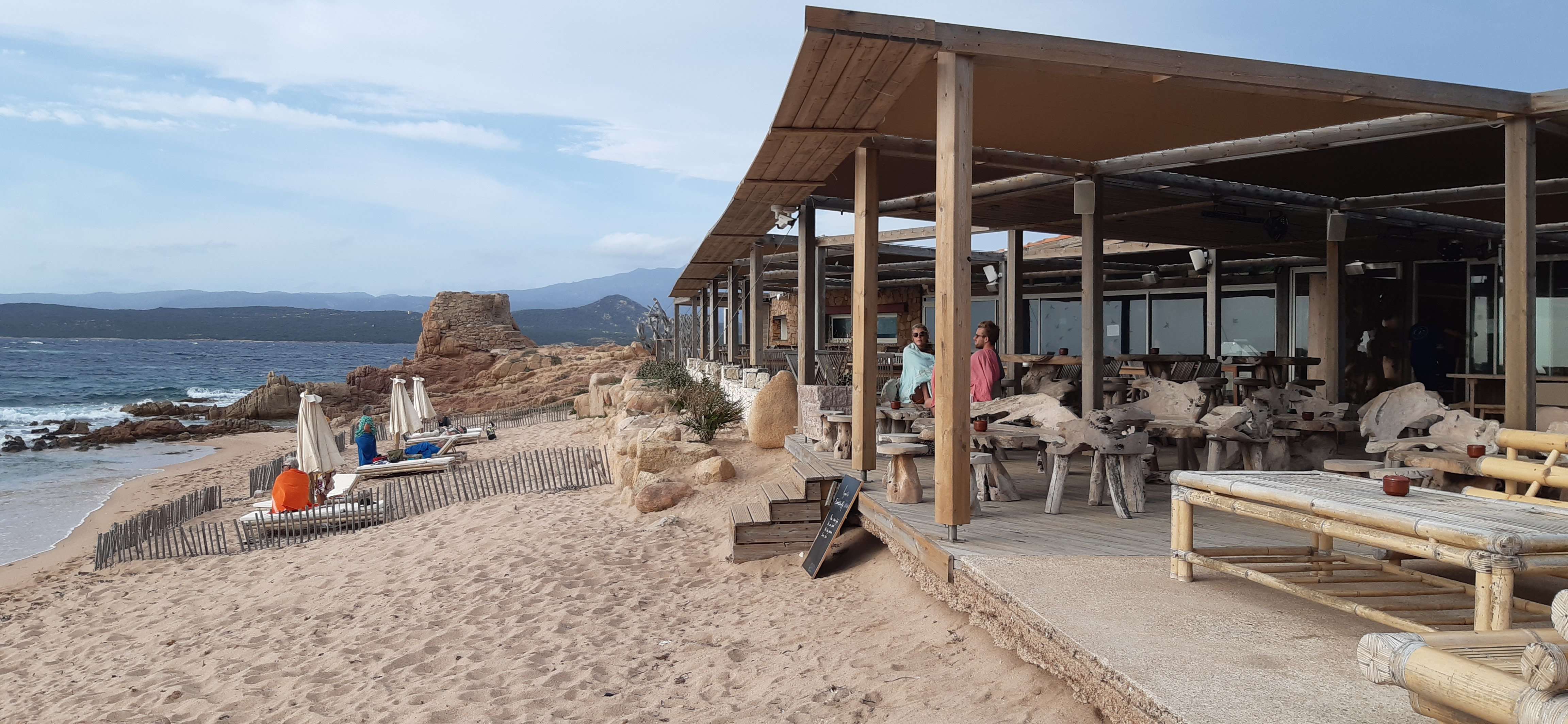 L'endroit est idéal pour admirer le coucher de soleil après une journée à la plage. Il est possible d'y manger sur le pouce, ou dans le restaurant. Les prix sont un peu élevés, mais le lieu vaut le coup d'oeil. Et comme souvent en Corse, vous y trouverez un personnel agréable et souriant.