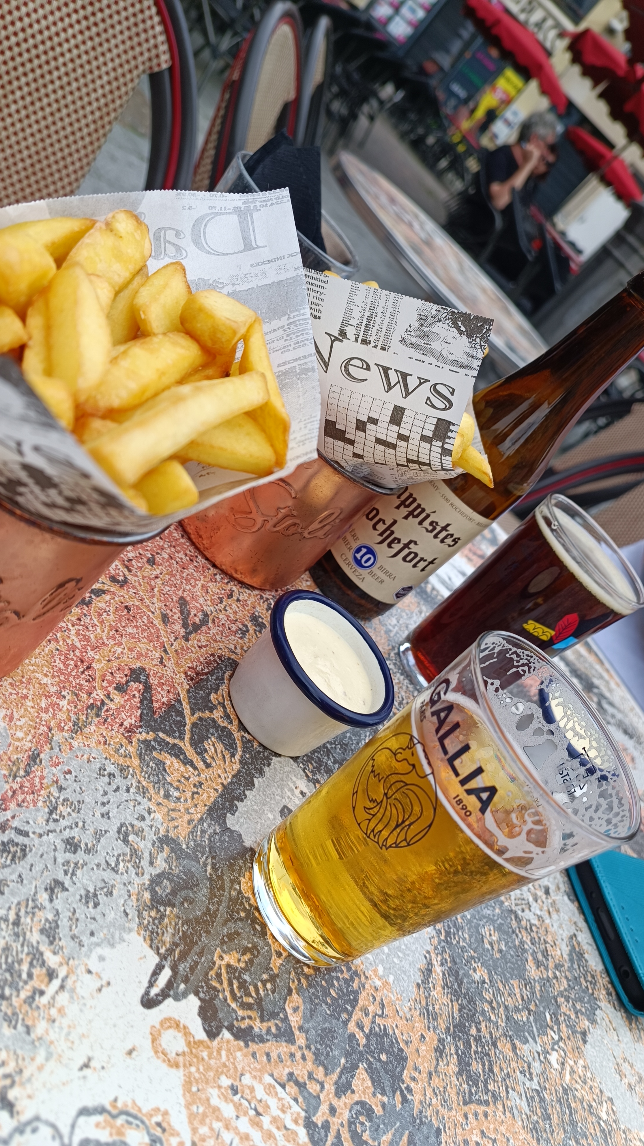 Nous sommes venus pour manger une moule frite et des tripes pour la braderie. Moules pas cuites renvoyées en cuisine puis une fois cuite sableuses, mal lavees et sans aucun goût. Service rapide mais très déçue. Les tripes étaient correctes.