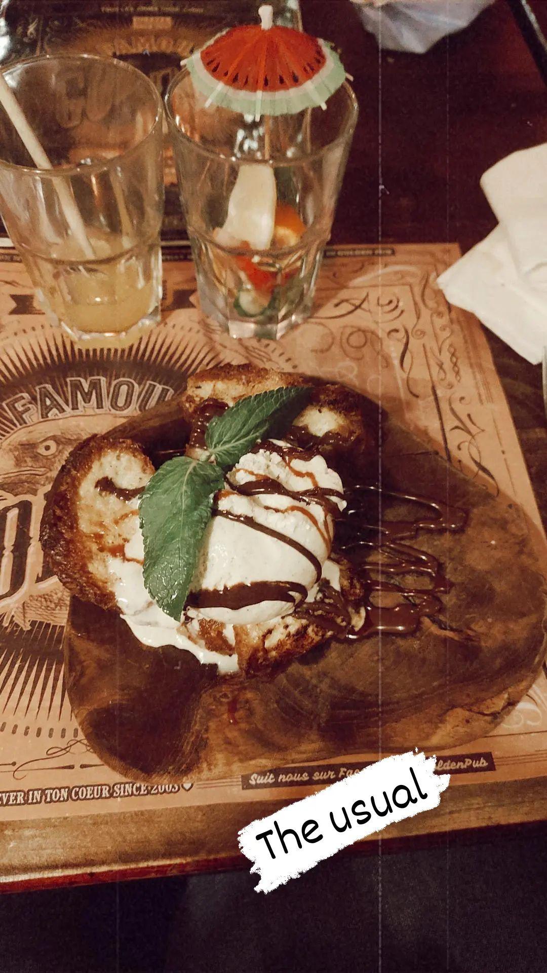 Toujours un plaisir de ce rendre au golden malgré le fait que nous n’habitons pas à côté, les cocktails sans alcool sont délicieux (même si vous ne faites plus le flibuste fatale) je trouve toujours mon bonheur, et je n’ai jamais mangé un pain perdu aussi bon! Deco plus que sympas, je recommande à 100% ❤️