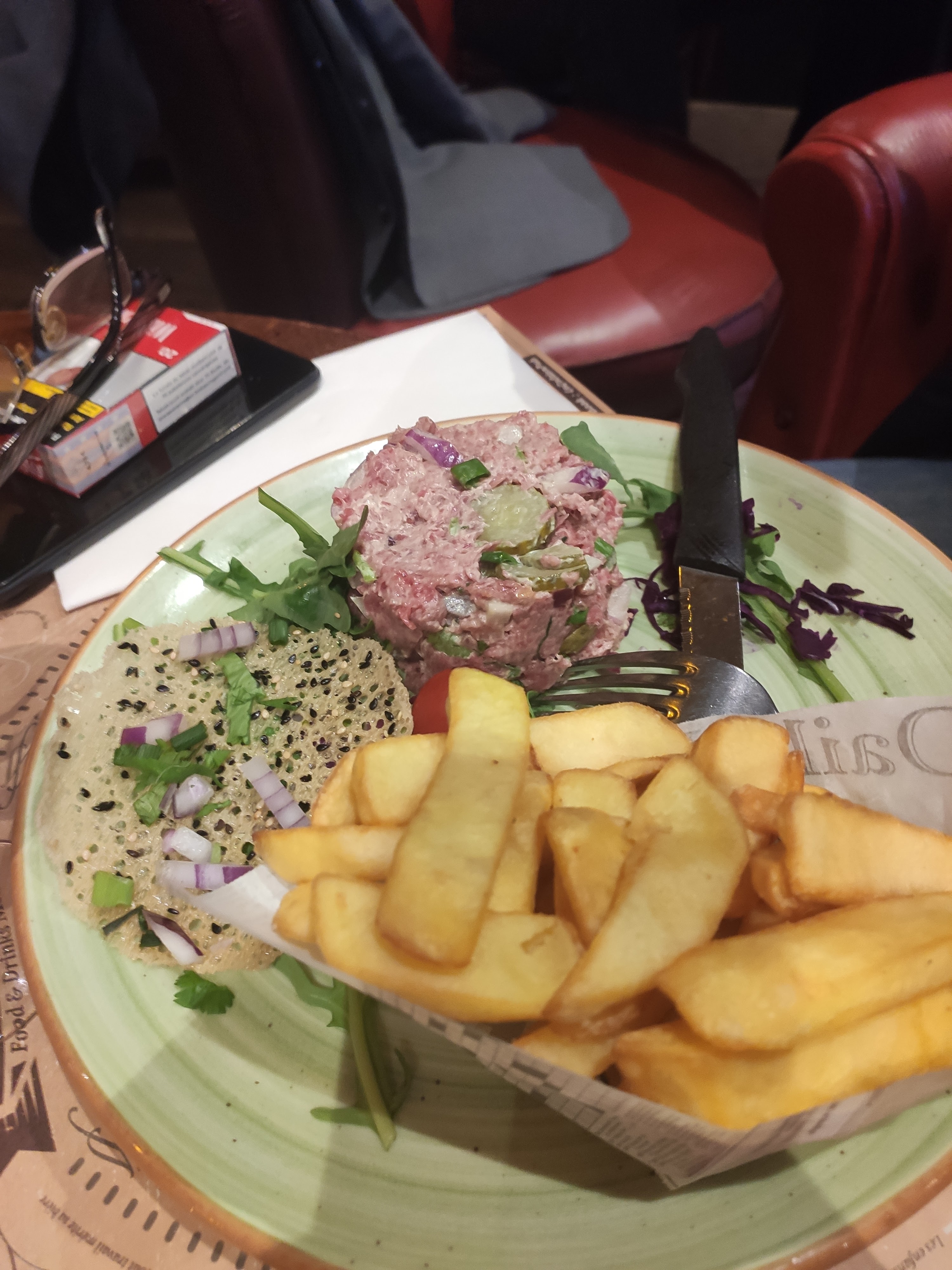 Repas basique d'une brasserie, l'ambiance et la déco sympa