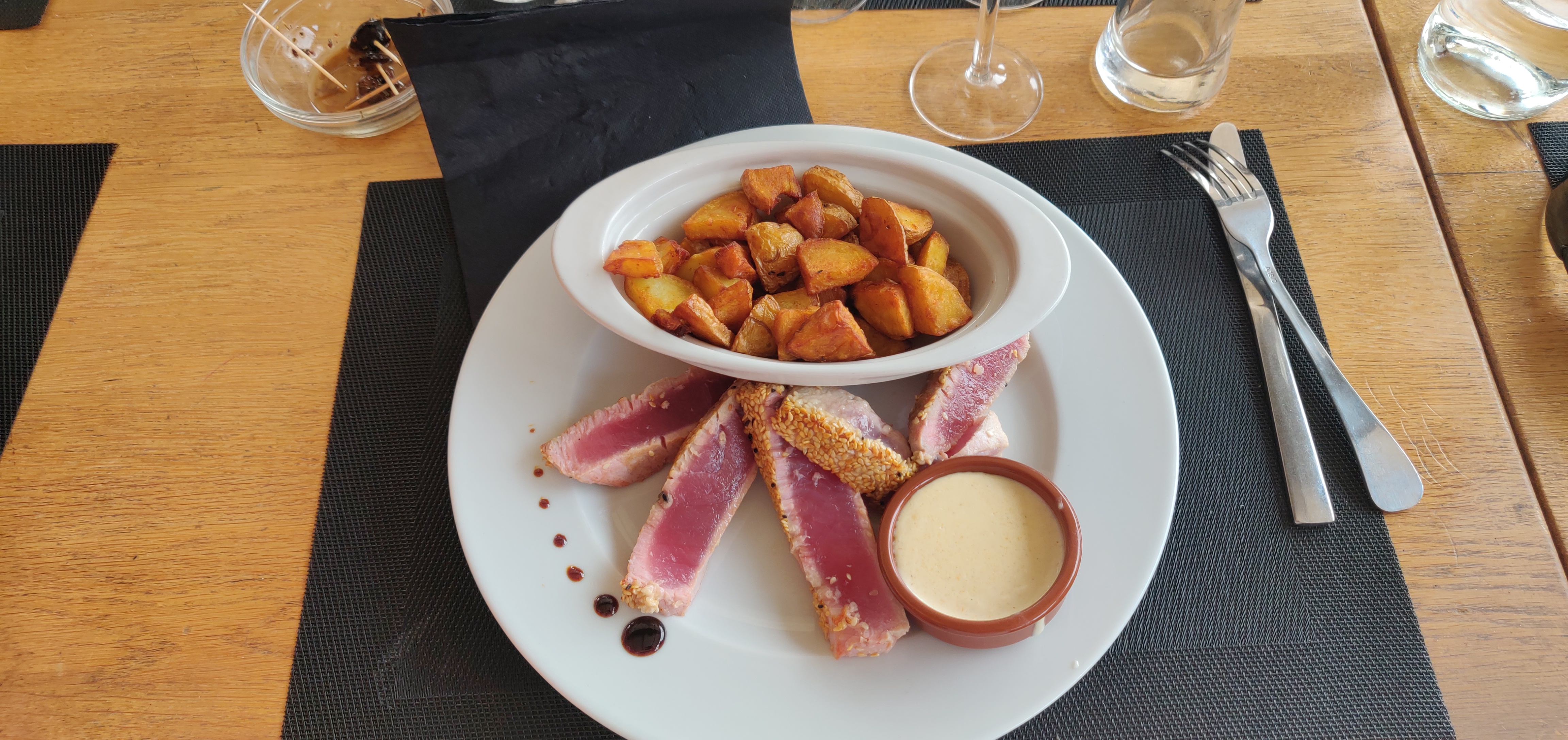 Mais on adore ce restaurant, la cuisine est faite maison, des poissons frais, de la viande excellente. Je recommande le mi cuit de thon excellent et la tarte citron destructurée. Mais aujourd'hui j'ai pris le calamar grillé et le thé gourmand. Les enfants sont abonnés aux burgers délicieux. Bref à chaque séjour on va y faire un petit tour. Allez-y c'est super et le personnel est vraiment sympathique.