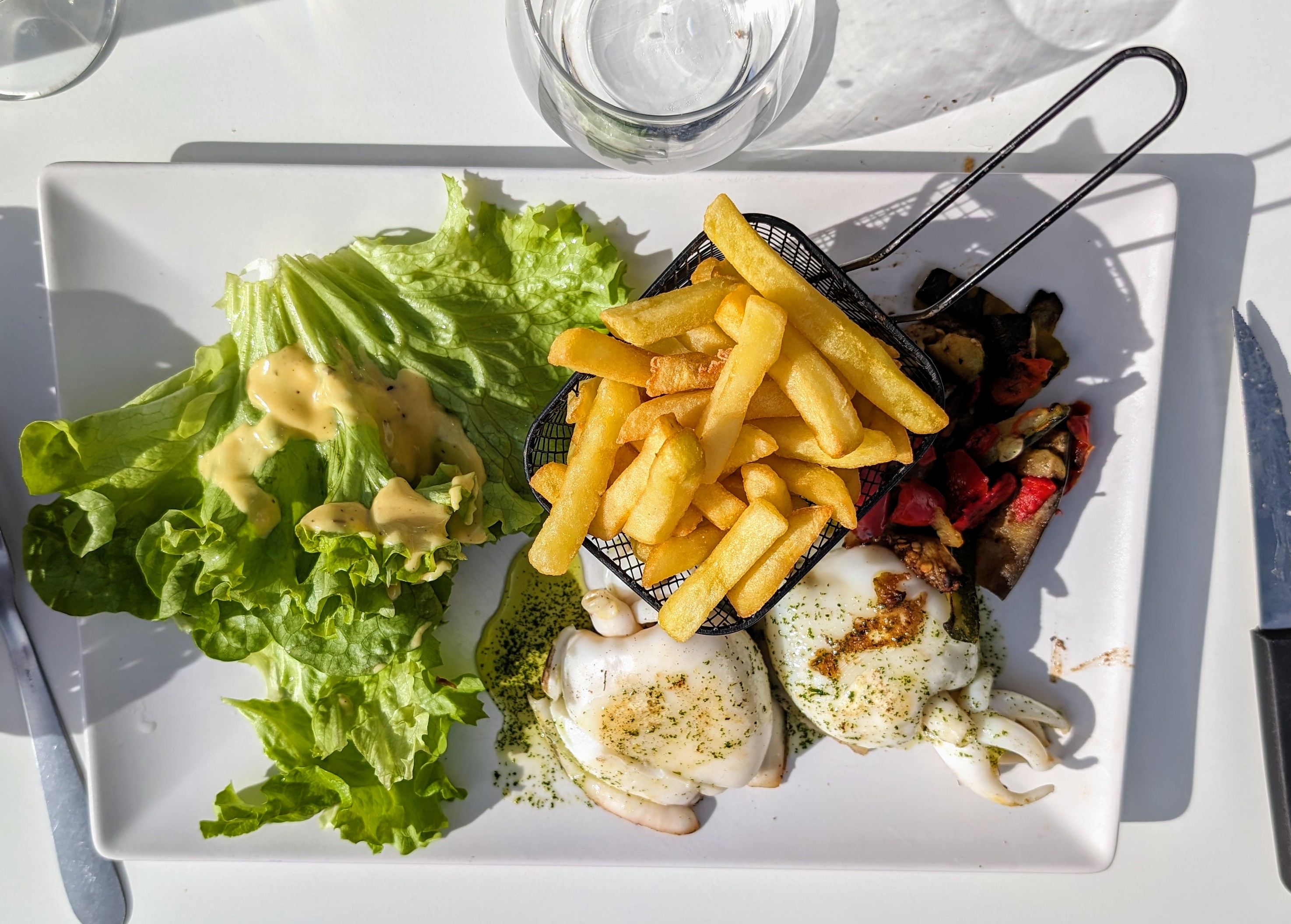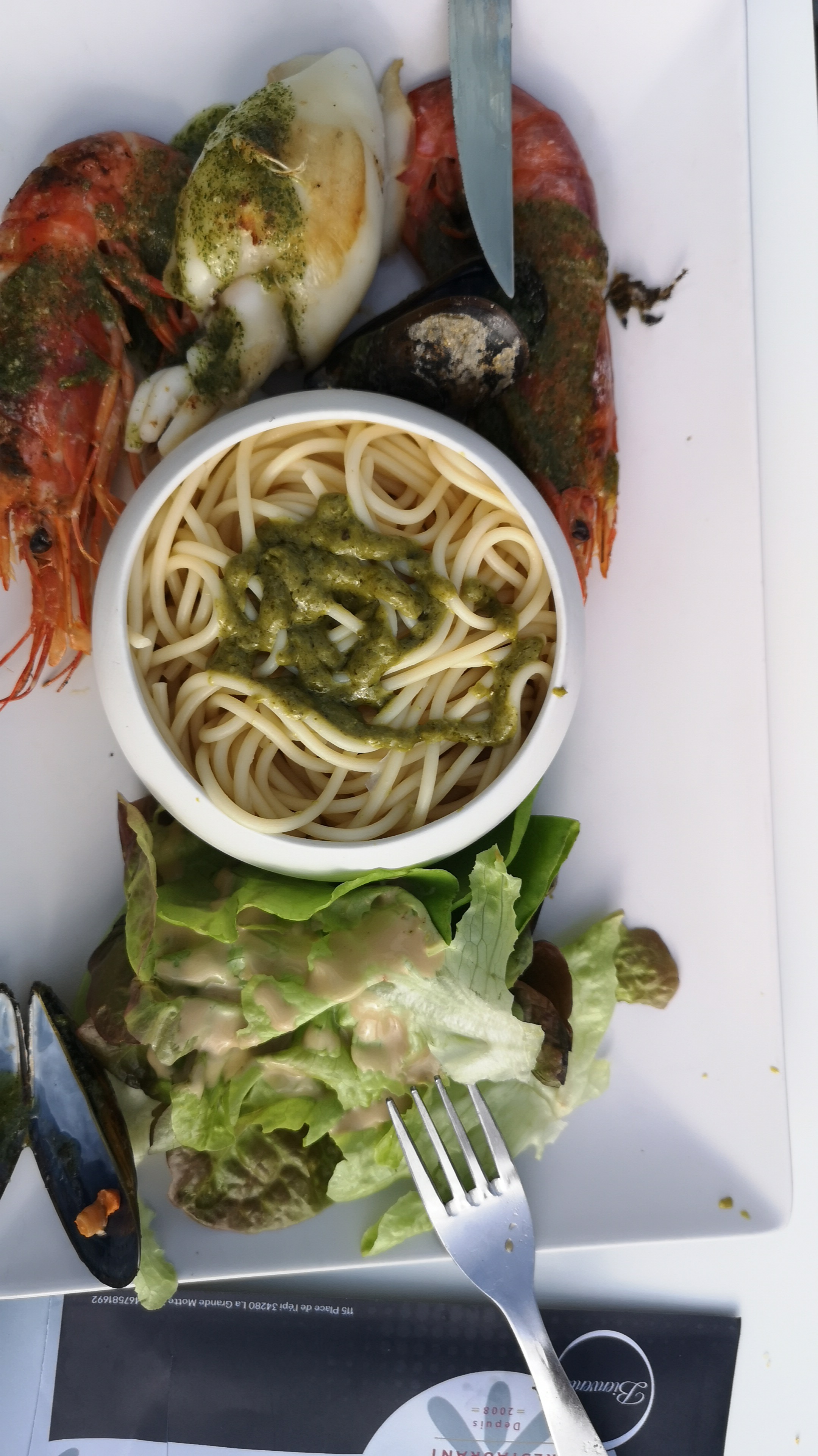 C'est un restaurant familial à taille humaine : il n'y a pas trop de tables, ce n'est donc pas l'usine comme dans des restaurants voisins. L'accueil est sympathique, le service rapide et gentil. La carte ne compte pas beaucoup de plats, mais ce n'est pas gênant pour un repas de semaine. J'ai pris en entrée un bouquet de crevettes-aïoli, et des seiches à la plancha pour continuer. Les portions sont généreuses. Ajoutez à cela un cadre superbe avec une terrasse donnant sur la mer. C'est un bel endroit pour manger à la Grande Motte.