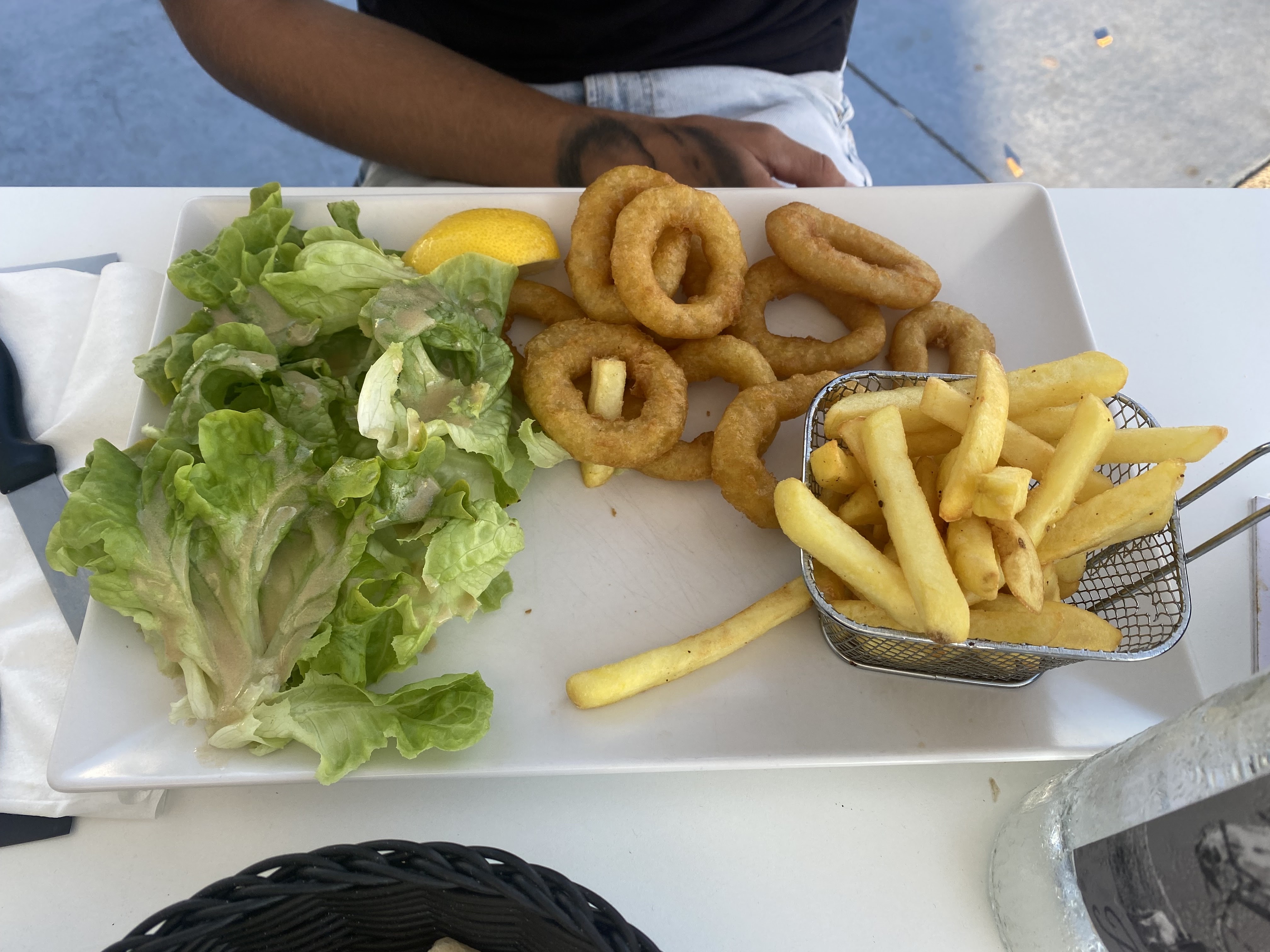 Très bon restaurant, carte avec divers choix. J’ai trouvée les serveurs agréables et polies. Nous avons pris une salade et une assiette de calamars cela été top. Vue en bord de mer super agréable.