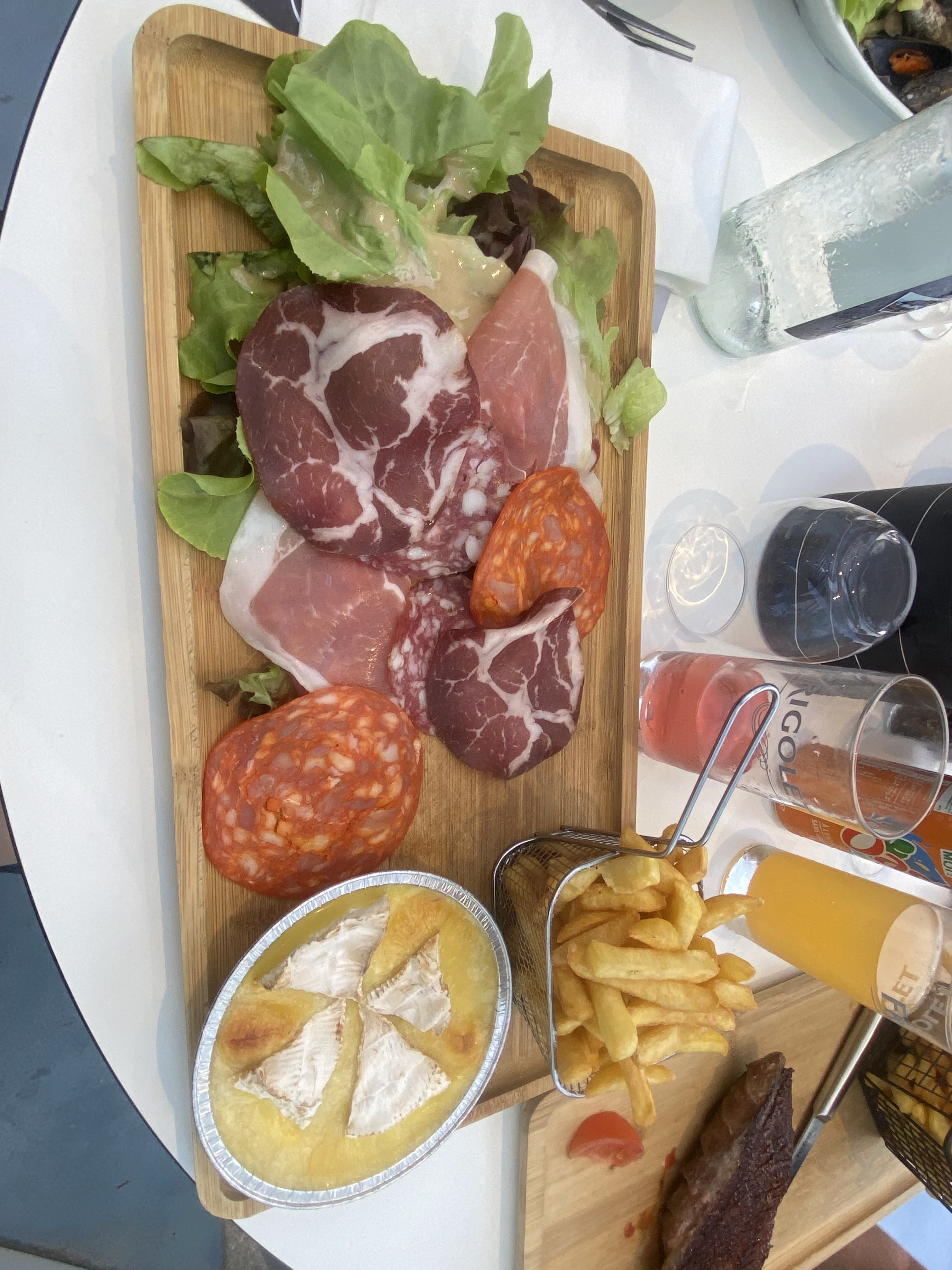 Nous avons pris une assiette de la mer on a cru Qu il nous avez servi moule frites ...juste deux malheureuse crevette dans l'assiette...camembert rôti servi dans un plat en alu pas super heureusement le prix était en fonction .sinon serveur très sympa ..