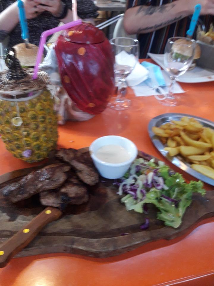 A part les serveuses plus qu agréables et souriantes , le reste laisse à désirer . Déjà l accueil par la patronne , hautaine, vous refroidi mais on essaie de faire face . Le cadre très agréable hormis des fumeurs même en terrasse . Les plats , écoeurant avec des frites baignant d huile . Franchement mise à part les cocktails, rien de gustatif . Je n ai pas trouvé de produits faits maison . Des ingrédients rajoutés dans les plats alors que non inscrit sur le plat lui même. Quelle mauvaise expérience pendant notre séjour a joyeuse !!!!!