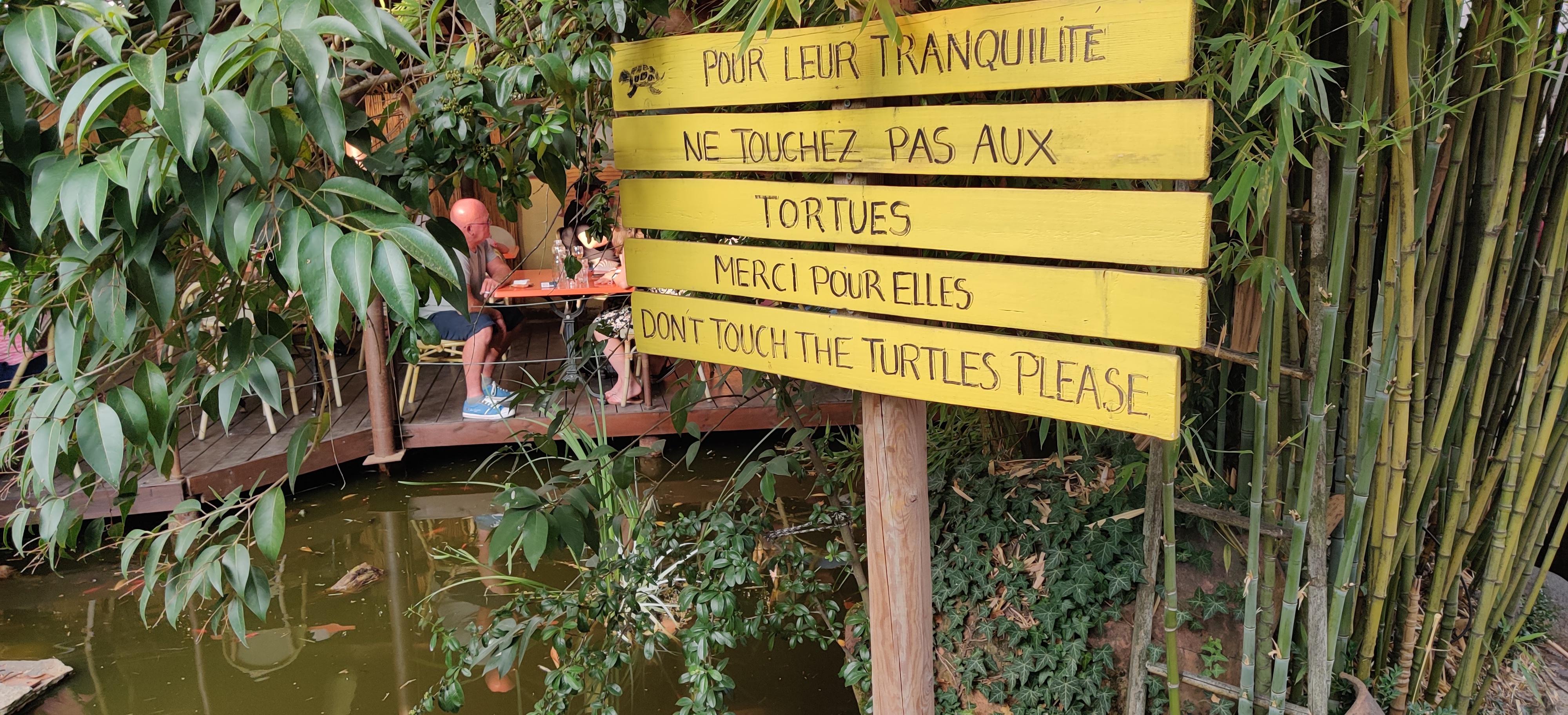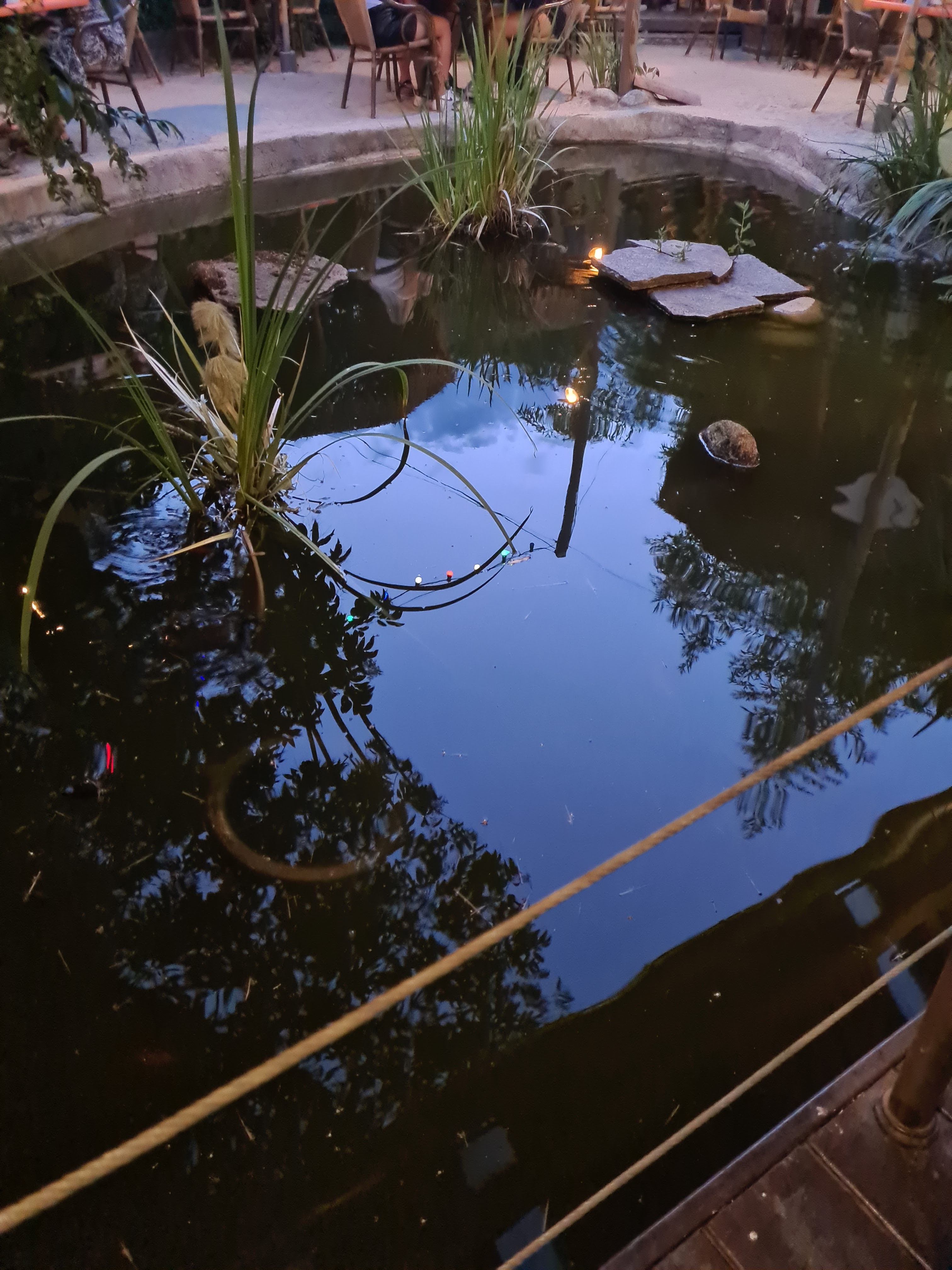 Magnifique terrasse avec un bassin et des tortues. Délicieux et excellent service ! 🙂
