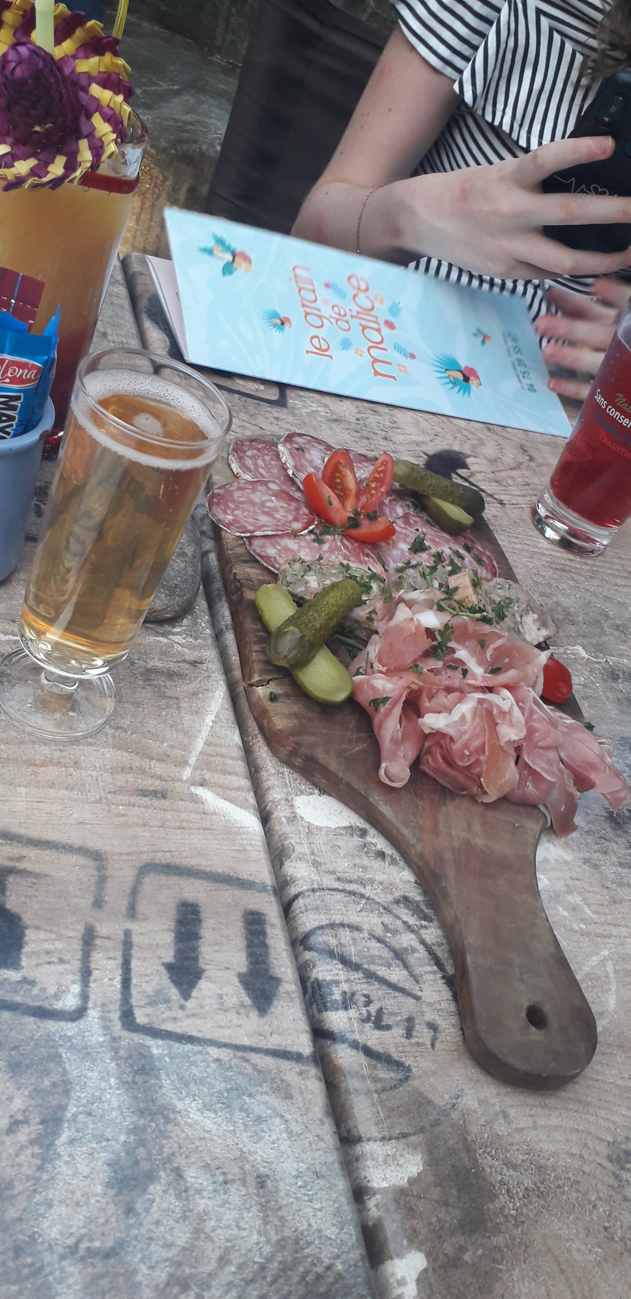 Une belle journée en Ardèche un repas pris à Joyeuse au grain de malice ou à ma grande surprise nous avons eu une remarque pas trés agréable du serveur pour notrte quard d'heure de retard ( ce n'était pas l'habitude de la maison ) mais un repas trés bon servi avec le sourire par une serveuse bien agréable !
