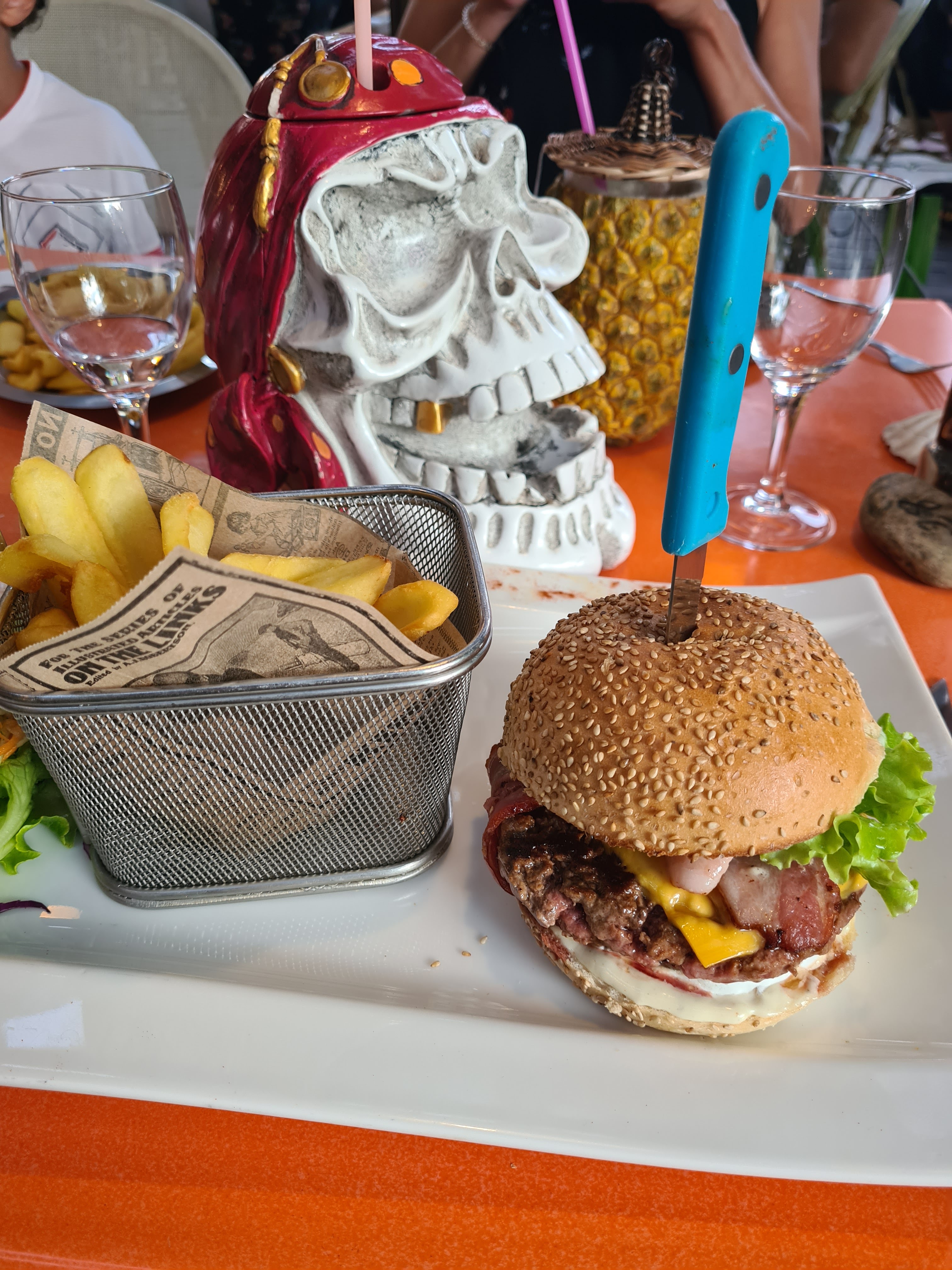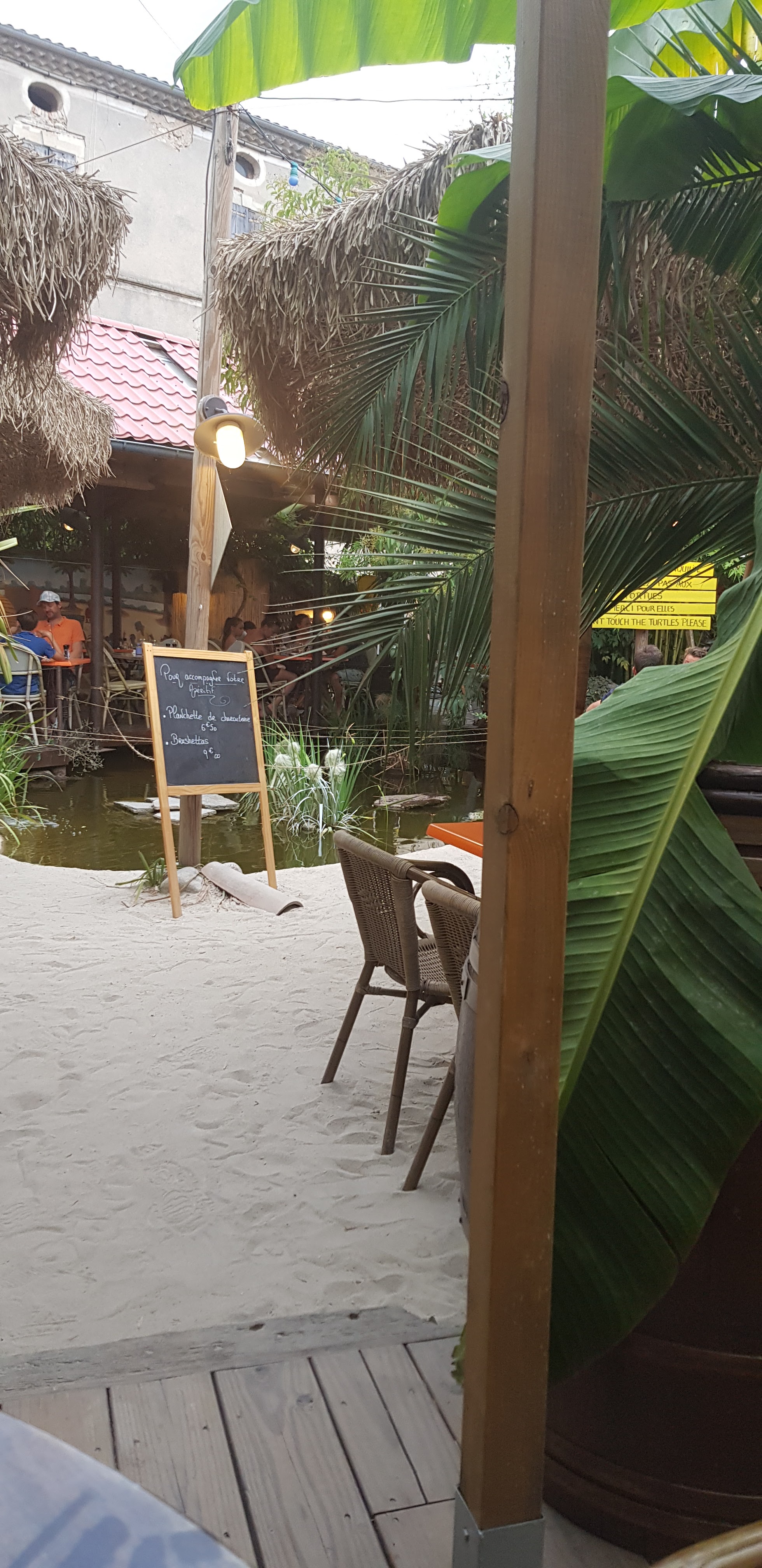 Magnifique restaurant, sur le devant de la terrasse aucune personne mais une fois passée l'entrée tous les clients sont installés derrière près des tortues d'eau. Accueil chaleureux, équipe souriante dynamique. Des GRANDS cocktails magnifique, super bon et niveau prix on en a pour son argent. Il ne sont pas avare sur les quantités, agréablement surprise et j'ai regretté de pas avoir mangé sur place. Les burgers avaient l'air d'être irrésistiblement bon. Je recommande à 100%.